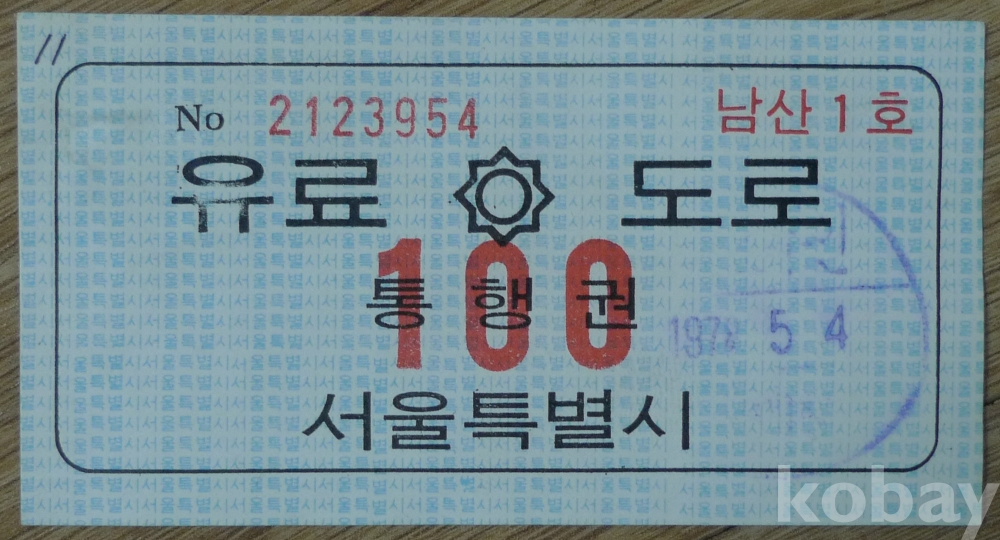 1978년 서울 남산1호 터널 유료 도로 통행권