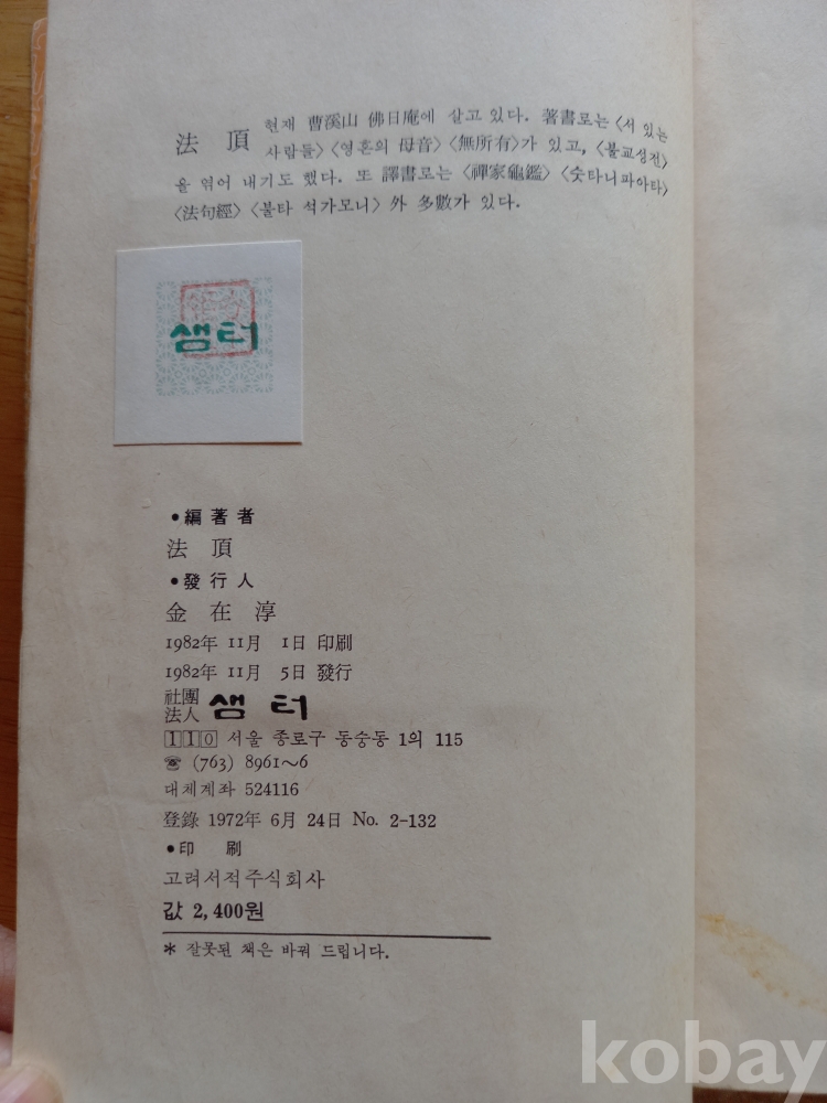 상태: 중하, 앞표지 일부 분리됨, 책등 낡음