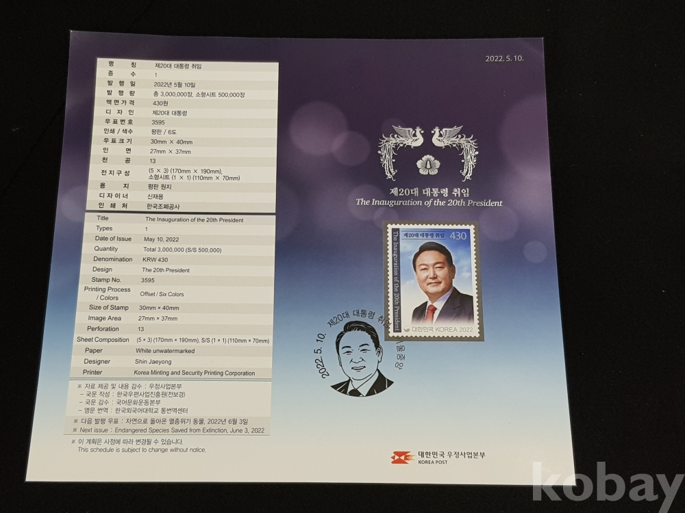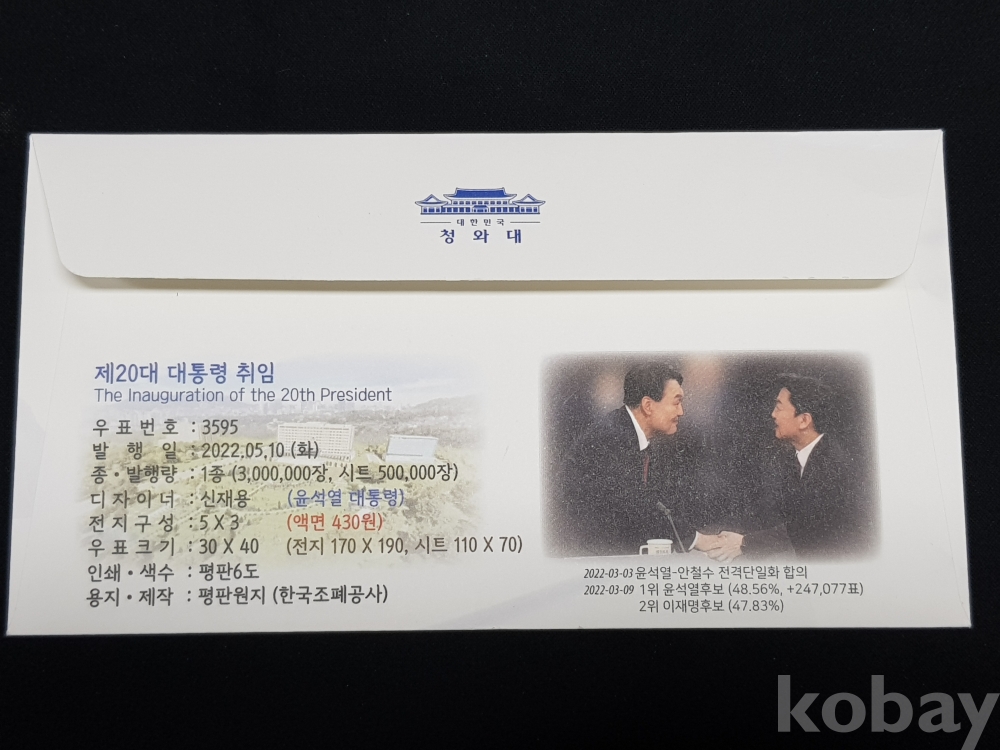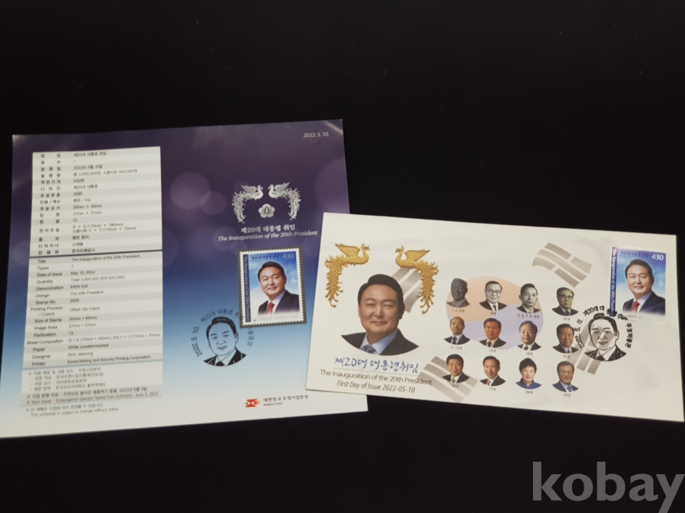 - 제 20대 윤석열 대통령 취임 초일봉피, 안내카드 2종 모음