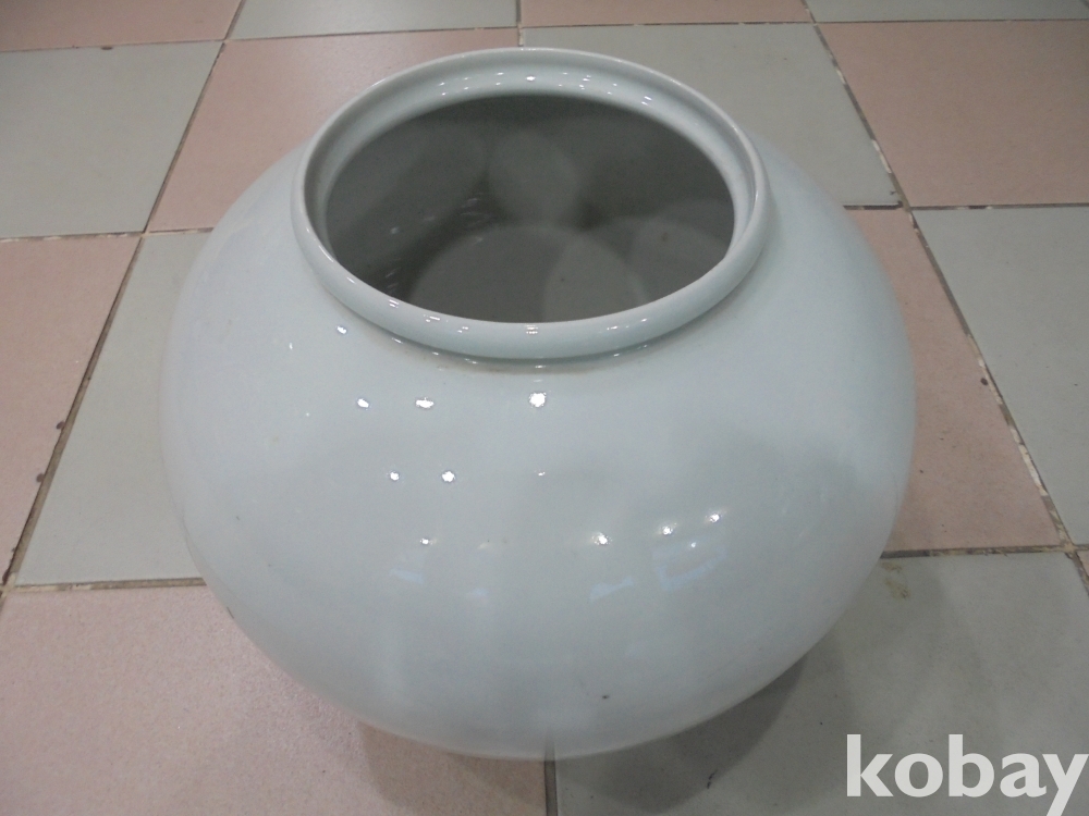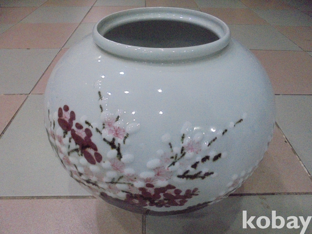 순백자에 아주매끔하고 철화로 고목을 그리고 매화는 홍백꽃을 볼록하게 입체로 만들은 청산 입체고매화 큰항아리