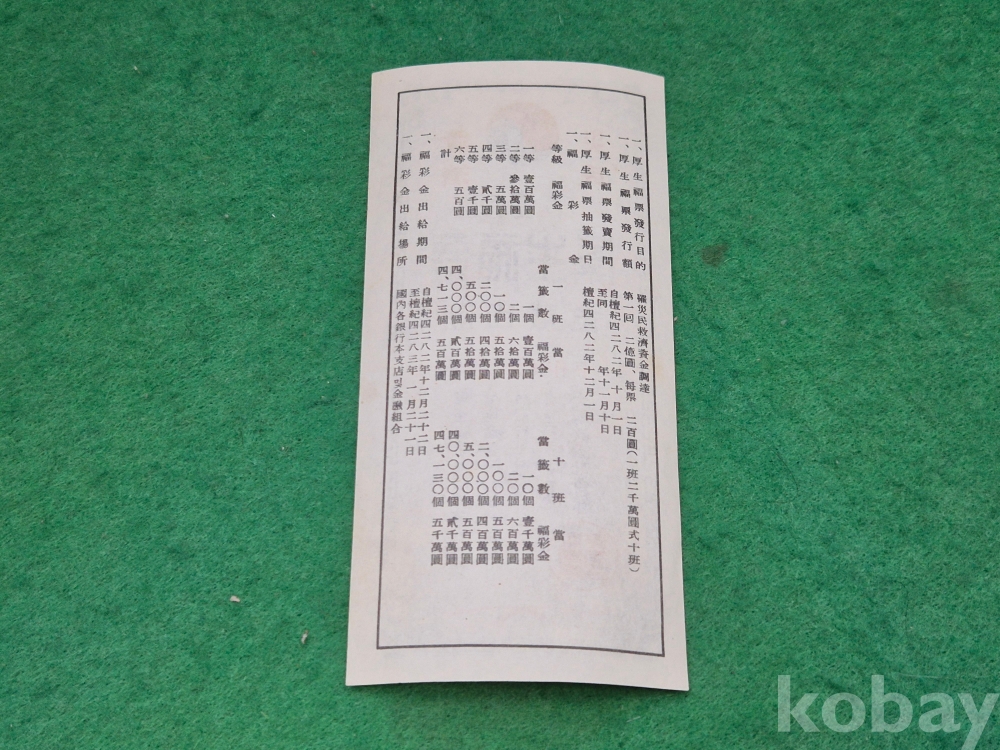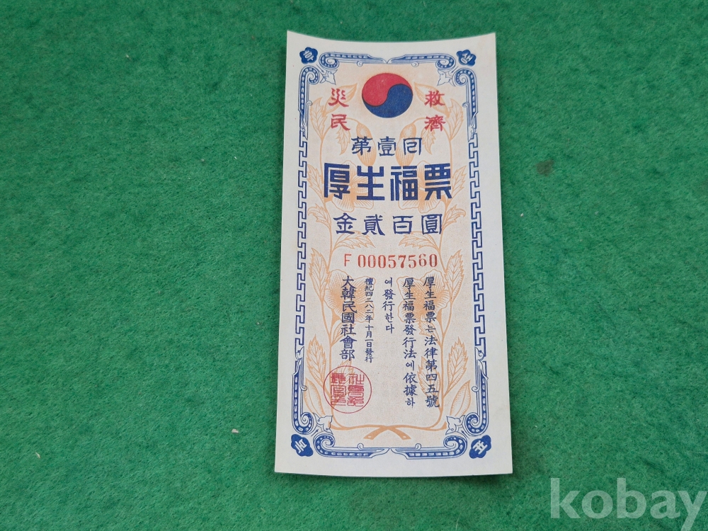 1]. 품명 : 第壹回 厚生福票 (제1회 후생복표)