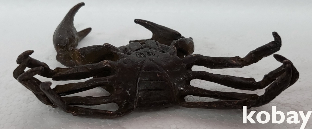 연대 갖춘 청동으로 완성된 꽃게 형상으로 붓을 올려놓는필가(筆家)입니다