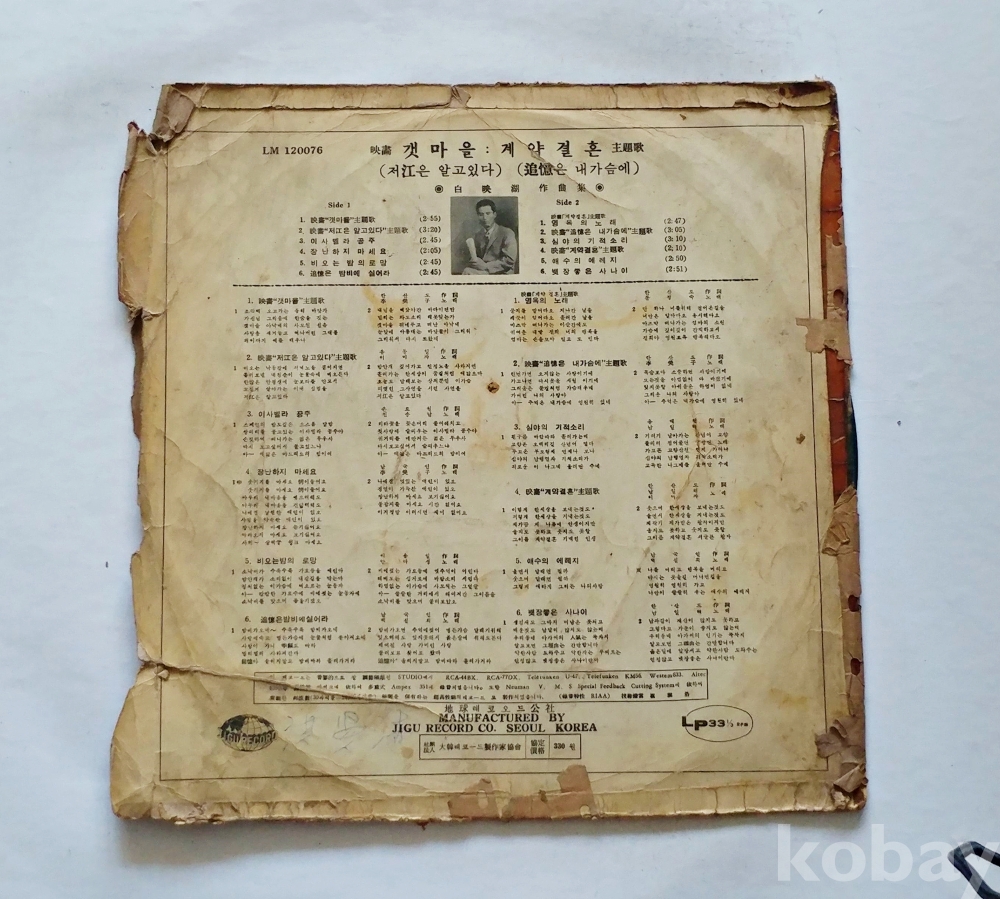 | 자켓상태 | P : 물에 젖거나 심한 훼손 | 음반상태 | VG : 생활 기스 다수, 가벼운 노이즈 존재 | 발매정보 | 알수없음 | 가사지여부 | 무 |
