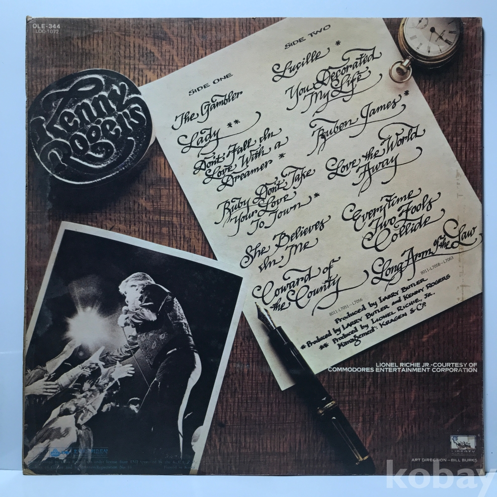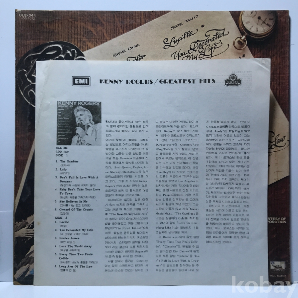 LP 1/ 17-16 KENNY ROGERS GREATEST HITS ` 80 오아시스 자켓 EX 알판 EX