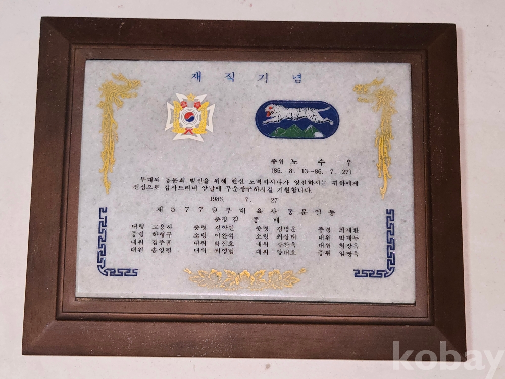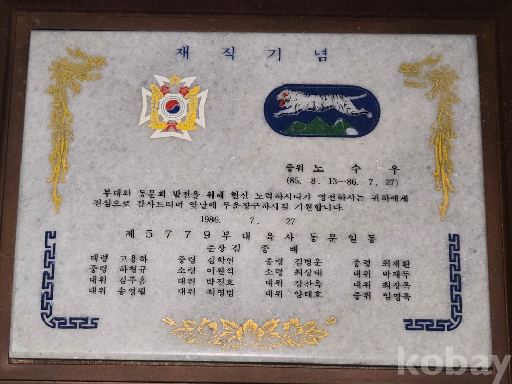 1986년 = 제5779부대 육사동문일동 == 재직기념패