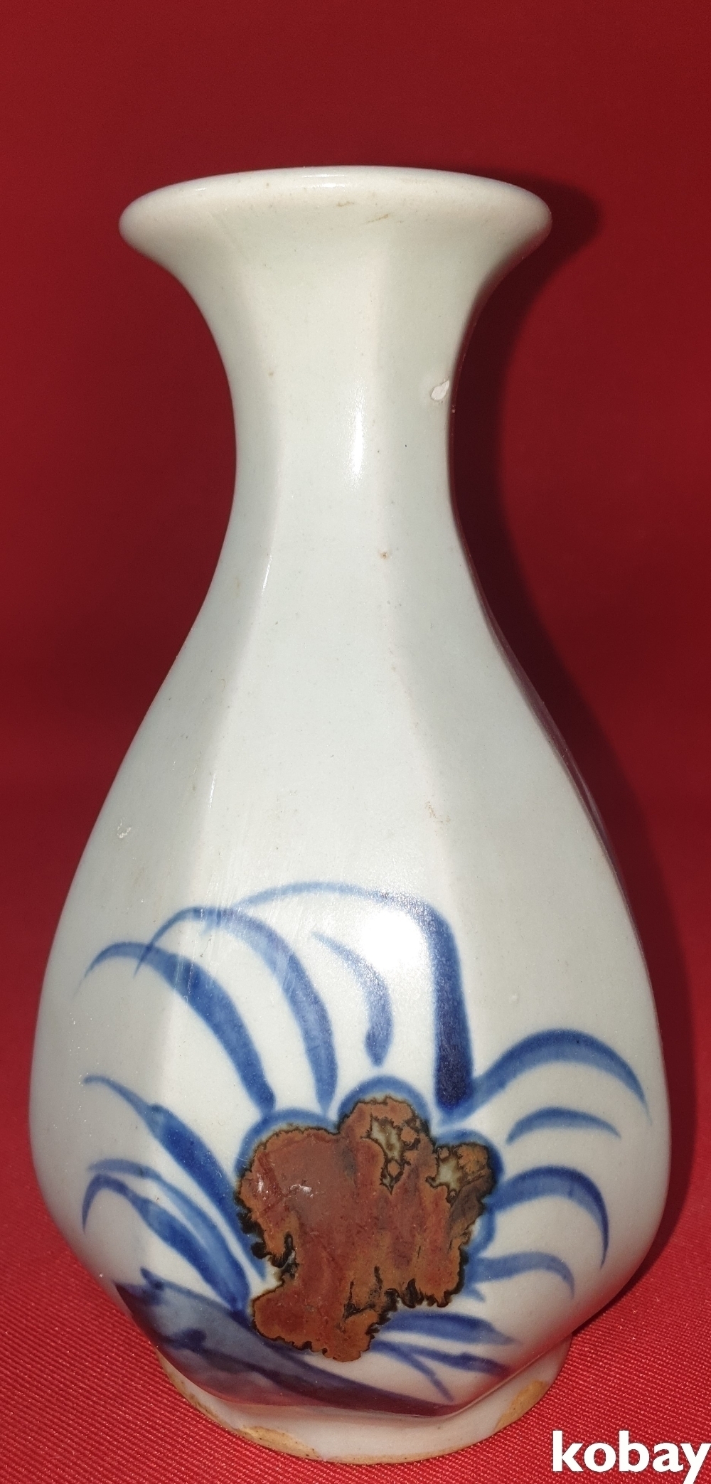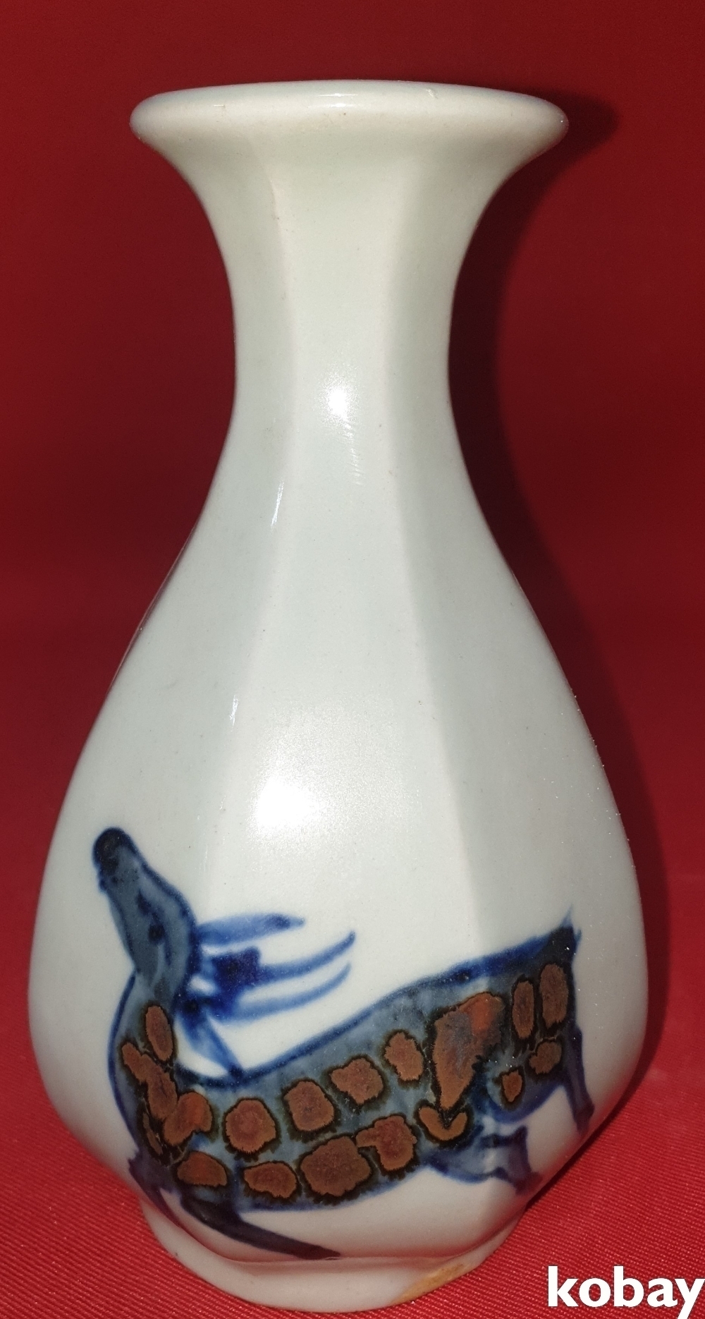 연대감이 보이는 철화 사슴(鹿)과 괴석에 난(蘭)문양 8각 병입니다,