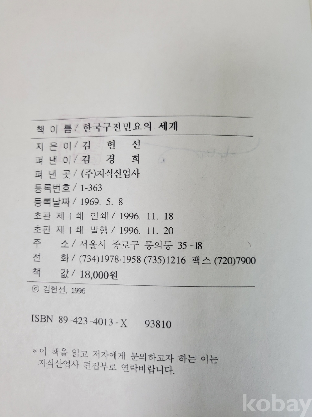 1. 한국 구전민요의 세계, 김헌선, 지식산업사, 1996년, 555쪽, 상태 상, 사진 참조