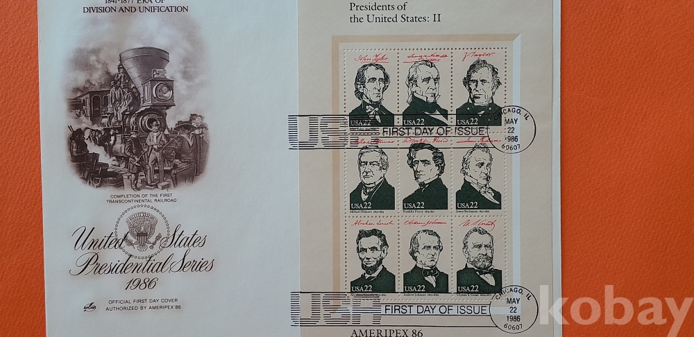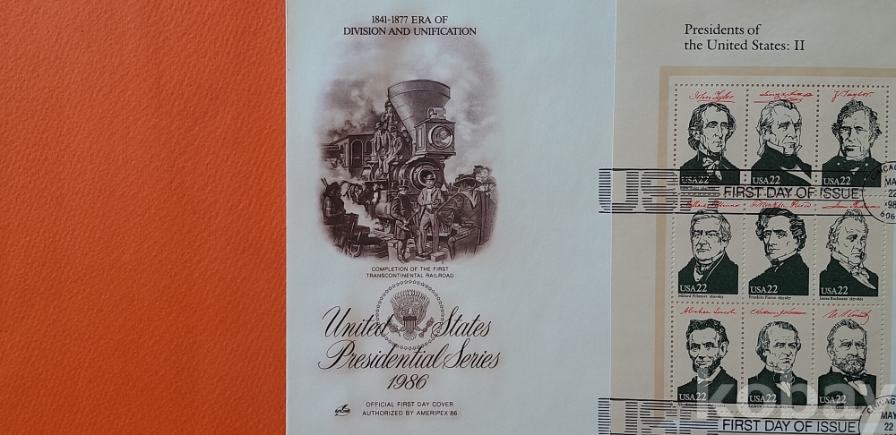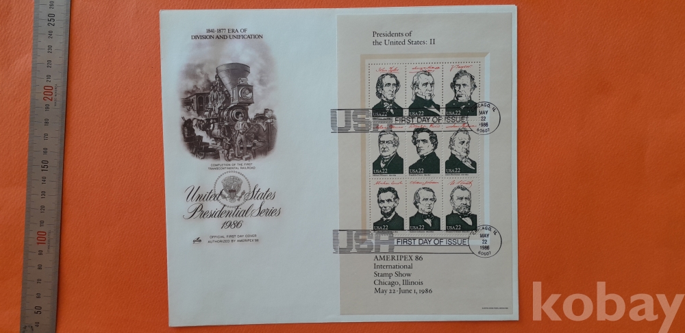 1986년 발행 미국 대통령시리즈 -2(1841년-1877년) 대형 초일봉피 입니다.