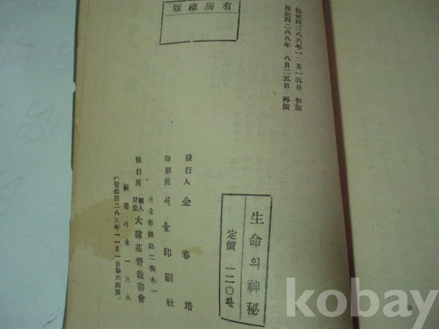 생명의 신비 (1955년, 대한기독교서회)
