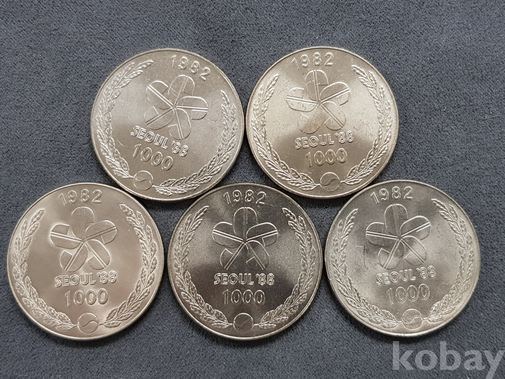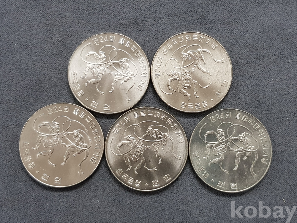- 제 24회 올림픽대회 유치 1차 민속춤 천원 기념주화 - 5개 일괄