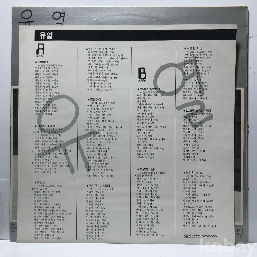 LP LP 1-21-15 유열 1집 - 이별이래 . 자켓 EX 알판 EX 87 년 국내반