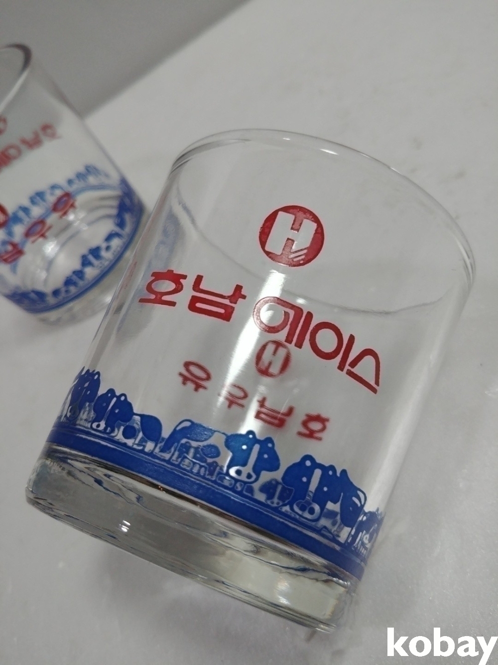 오래된 호남우유잔 호남에이스 요구르트 마크 잔 2개입니다