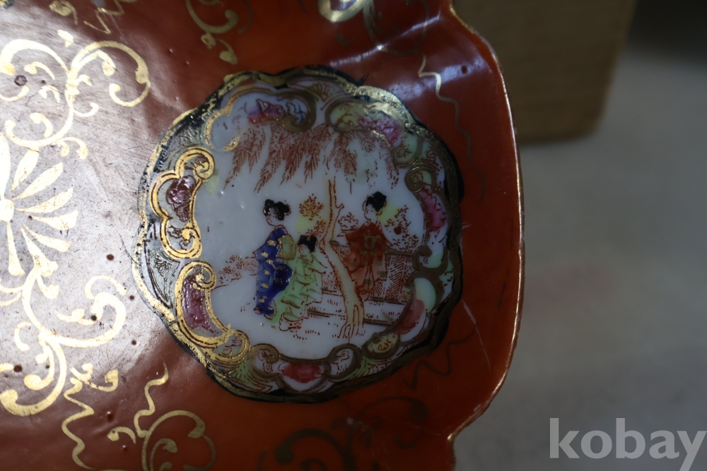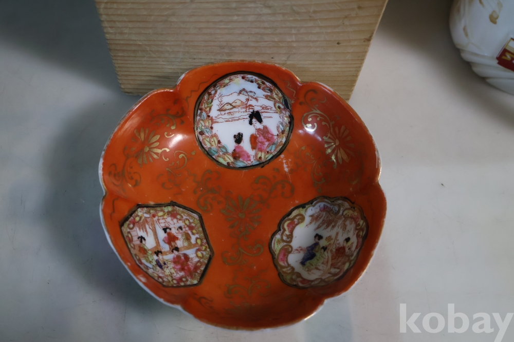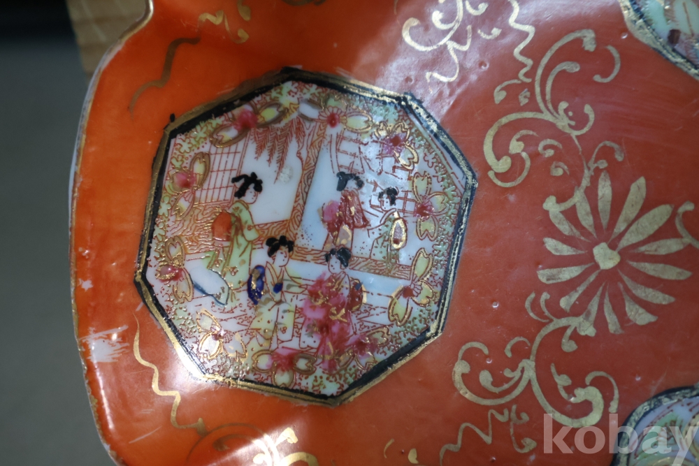 명치기 혹은 1920대 구미 유럽 수출 도자기 임니다 극히 귀한 바탕 색감과 3 개의 그림을 가진 유일무이한 명물 임니다