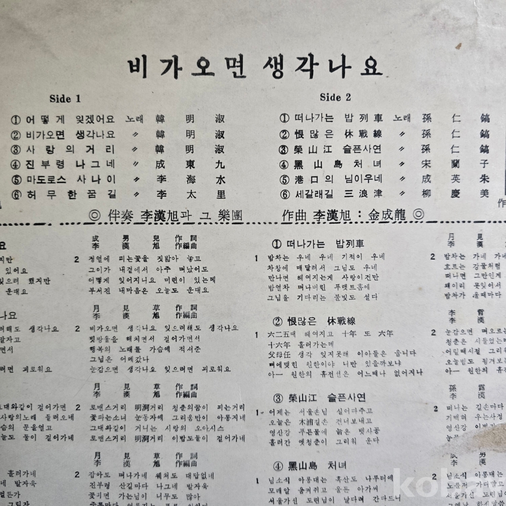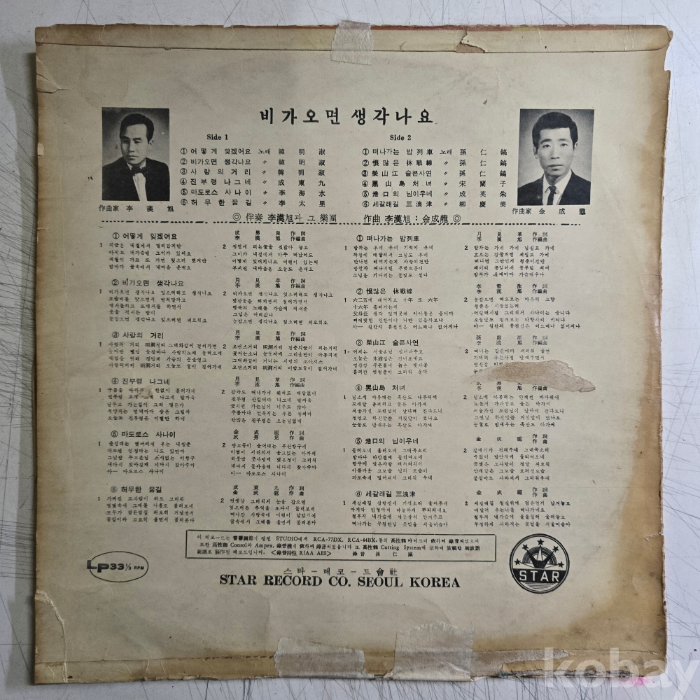 | 자켓상태 | VG : 주름, 접힘, 모서리 찢김 다수 | 음반상태 | VG : 생활 기스 다수, 가벼운 노이즈 존재 | 발매정보 | 초반 | 가사지여부 | 무 |