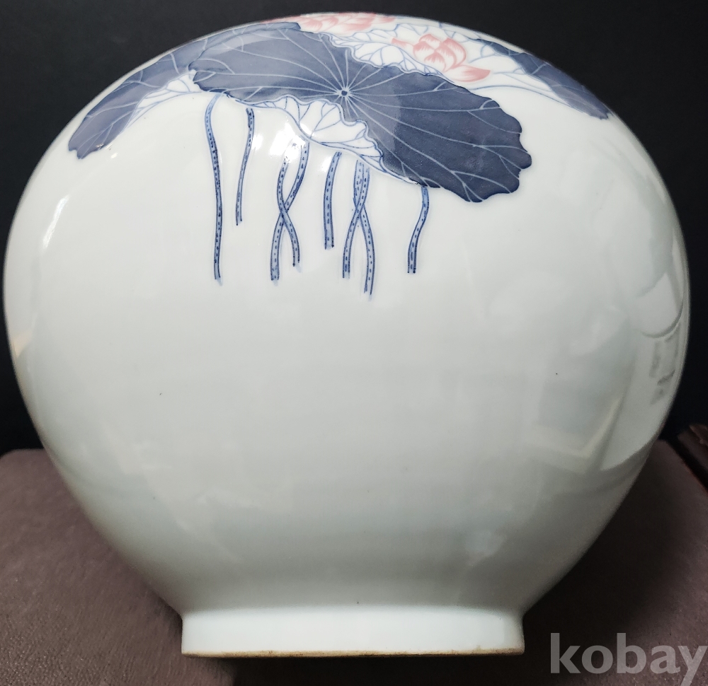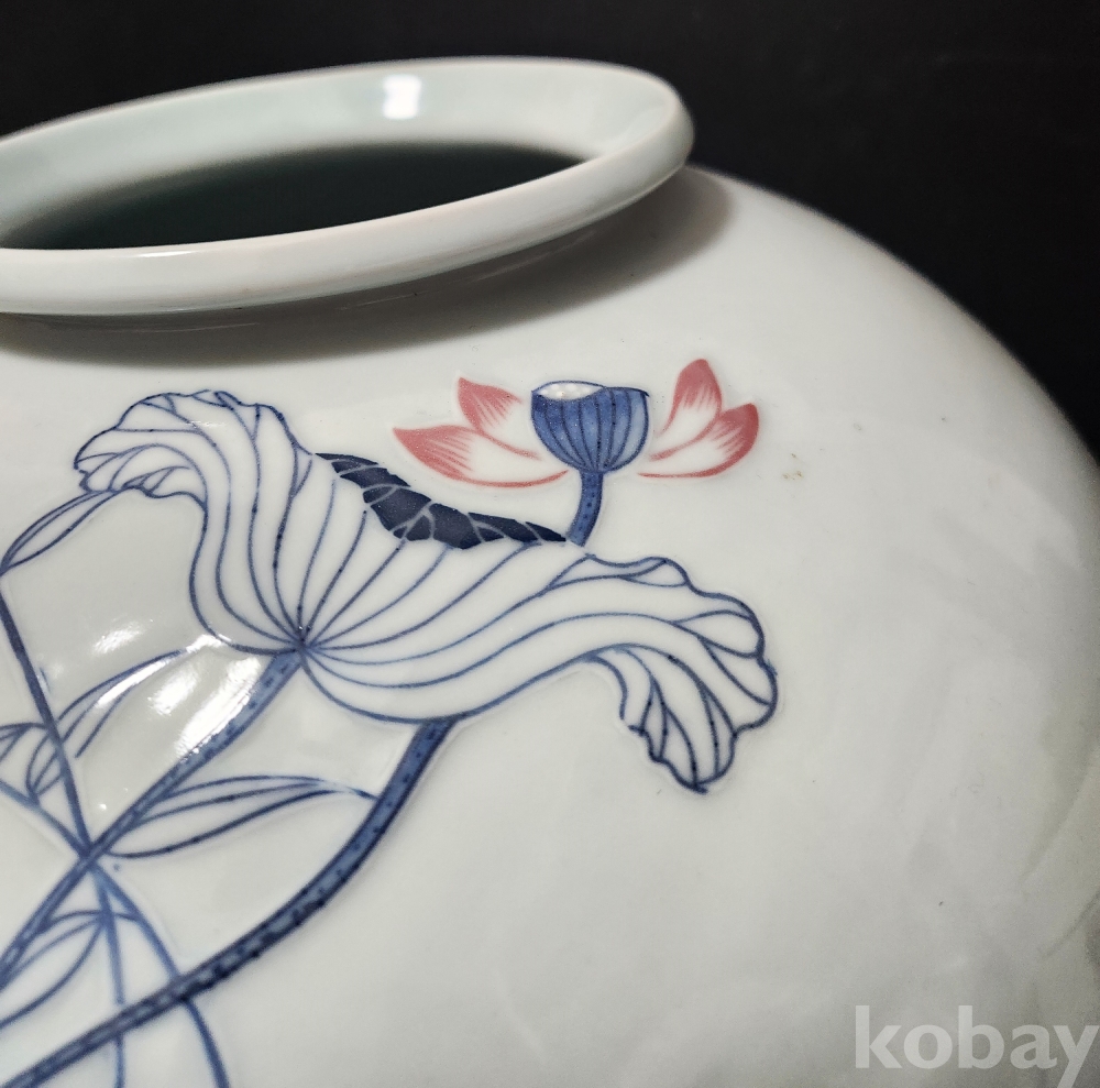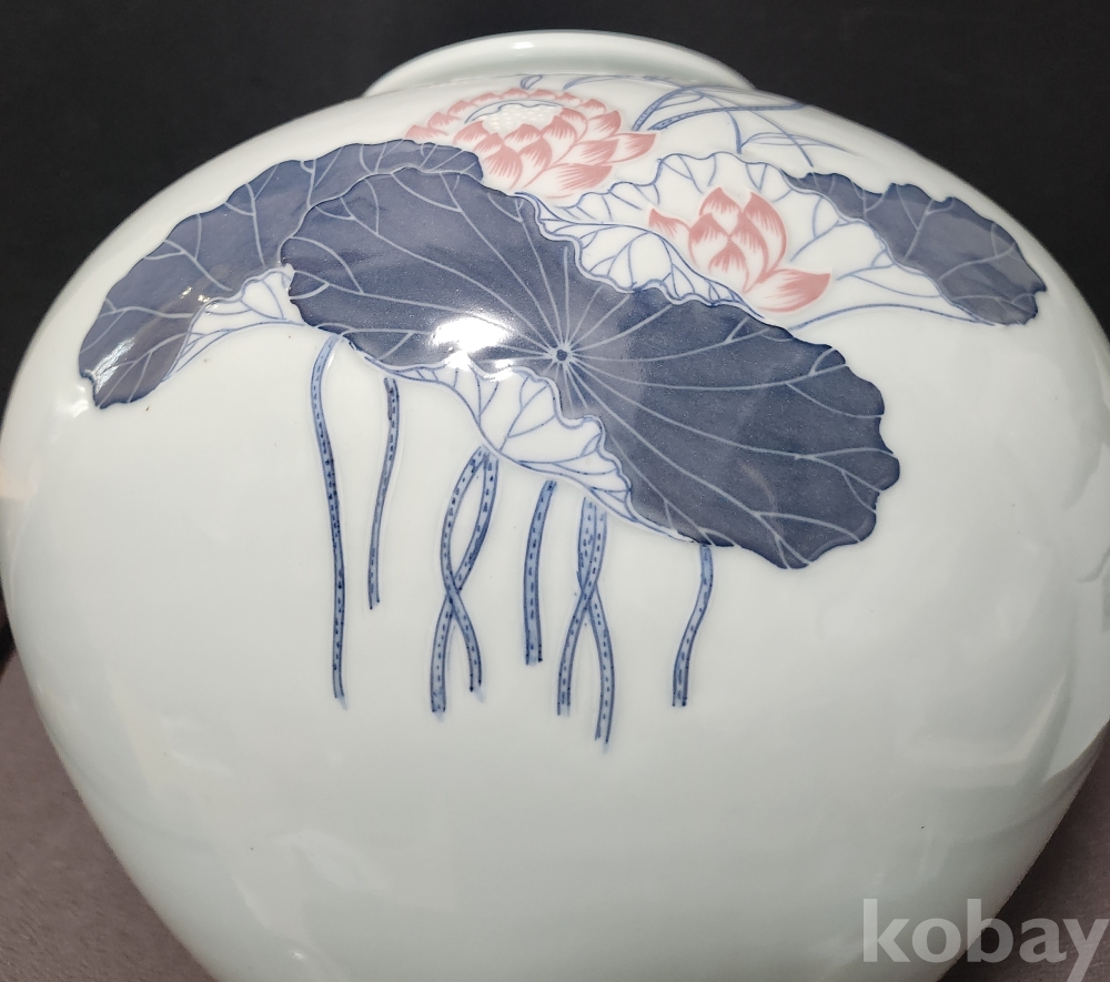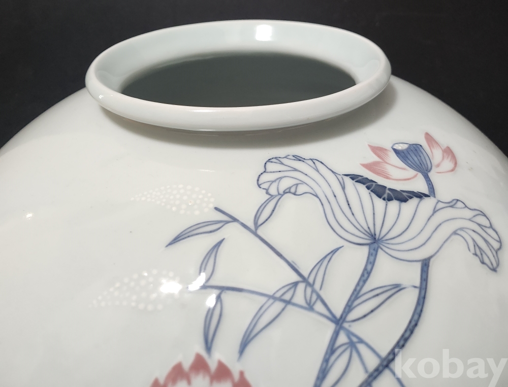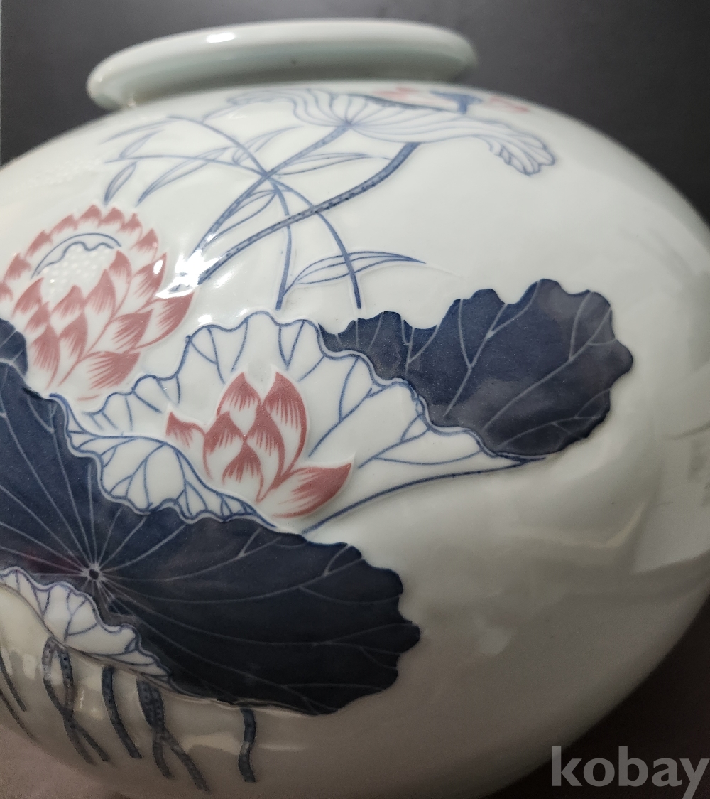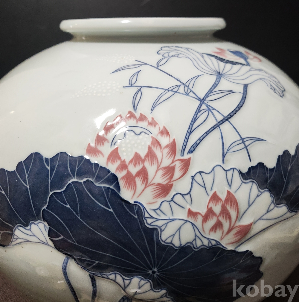 도평요 島坪窯 < 소민 小民 > 한일상 韓日相 < 백자청화진사양각연화문호 作 >