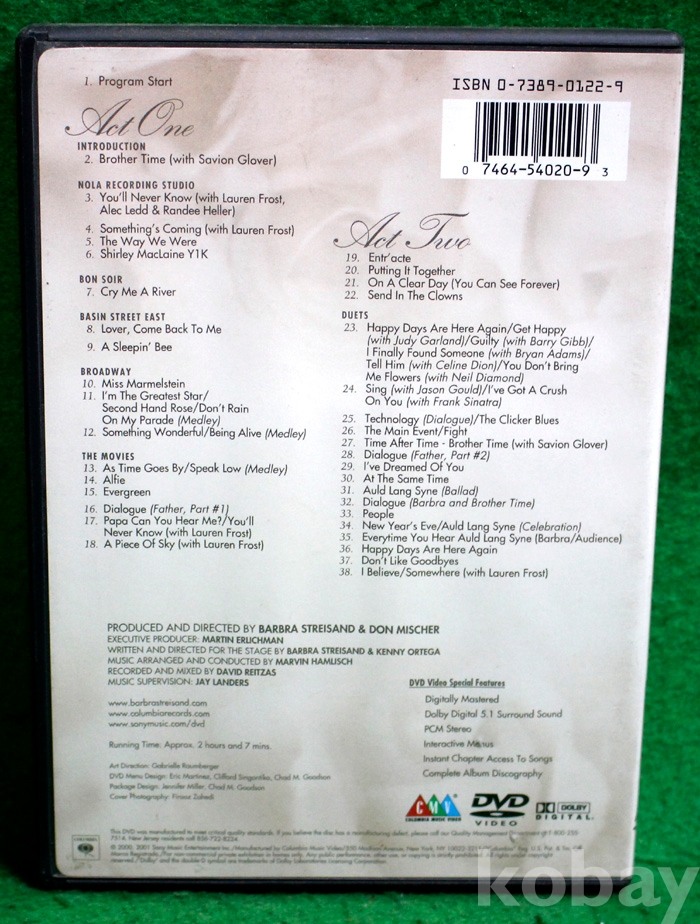 (미국제작 DVD) Barbra Streisand live in concert - Brother time / The way we were / Cry me a river ....