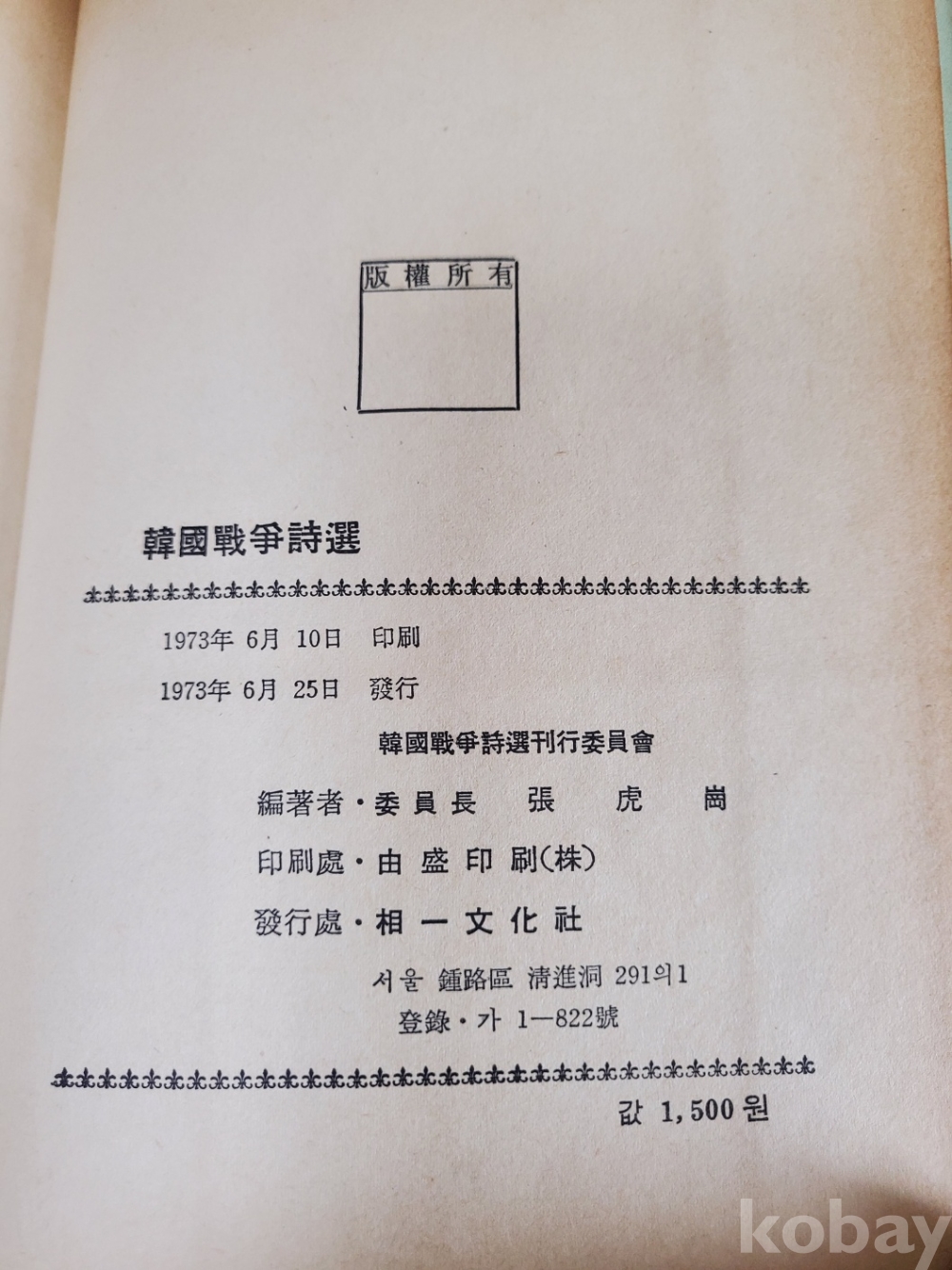 1. 한국전쟁시선, 한국전쟁시선간행위원회, 상일문화사, 1973년, 183쪽, 상태 상, 사진 참조