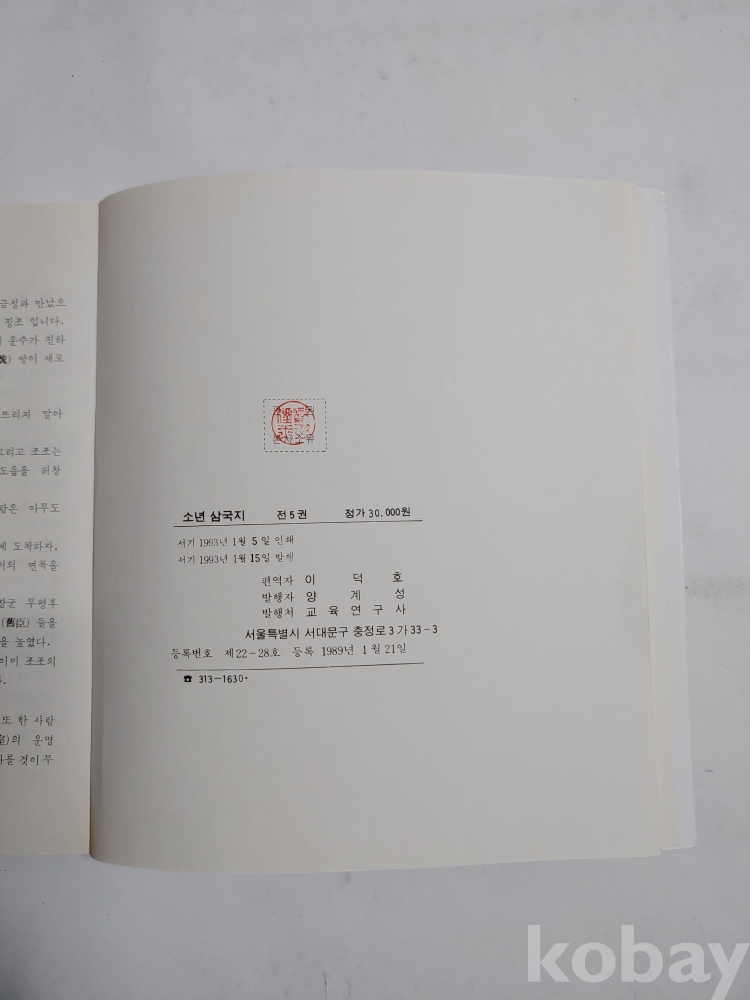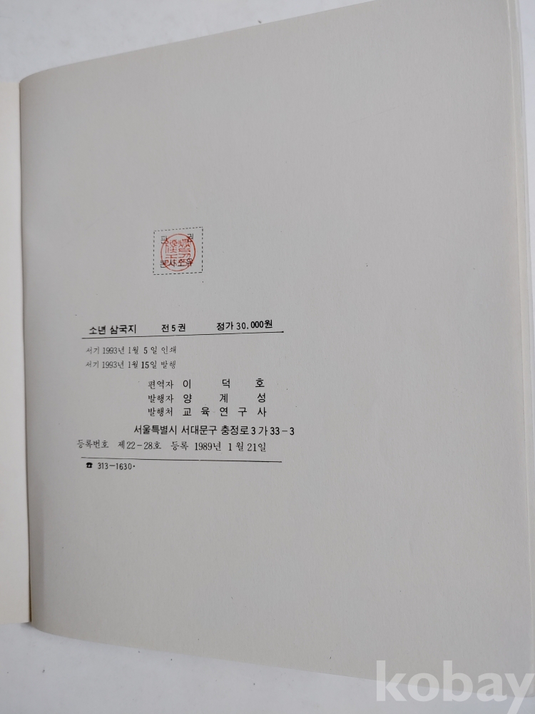 ★천원출발★ L-1-040 소년 삼국지 컬러판 그림 5권 (5권이상 묶음배송불가)