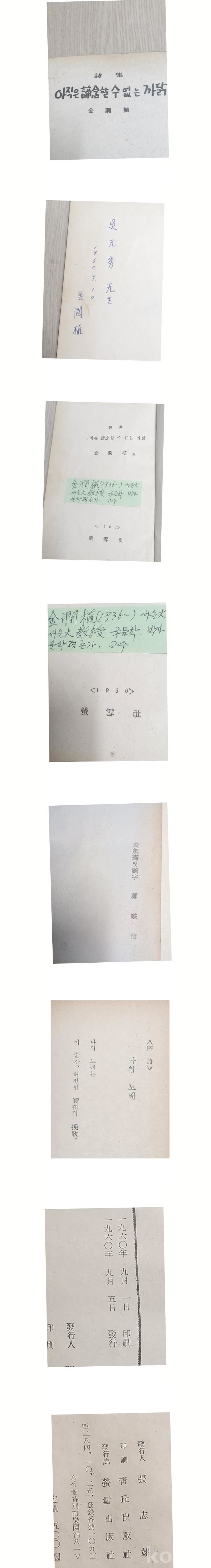 시인 김윤삭 서명본입니다