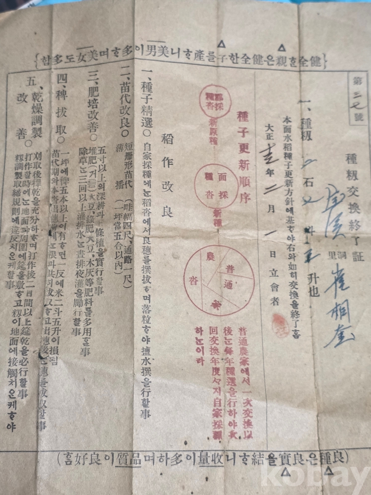 종류: 벼 종자 개량·교환 증명서 / 안내 전단