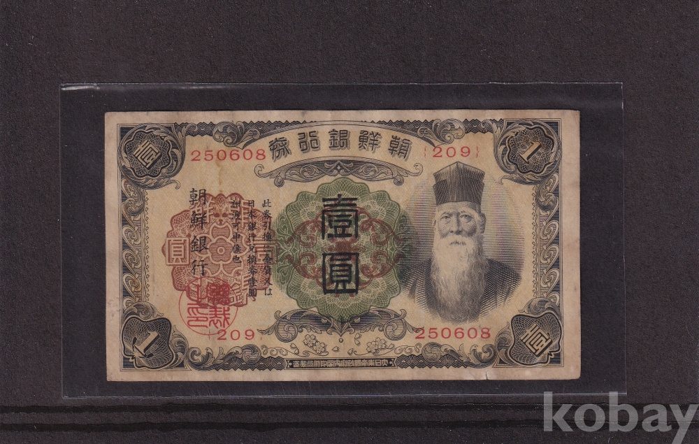 - 조선은행 1932년 개 일원 판번호 209번 유번호권 사용제 지폐
