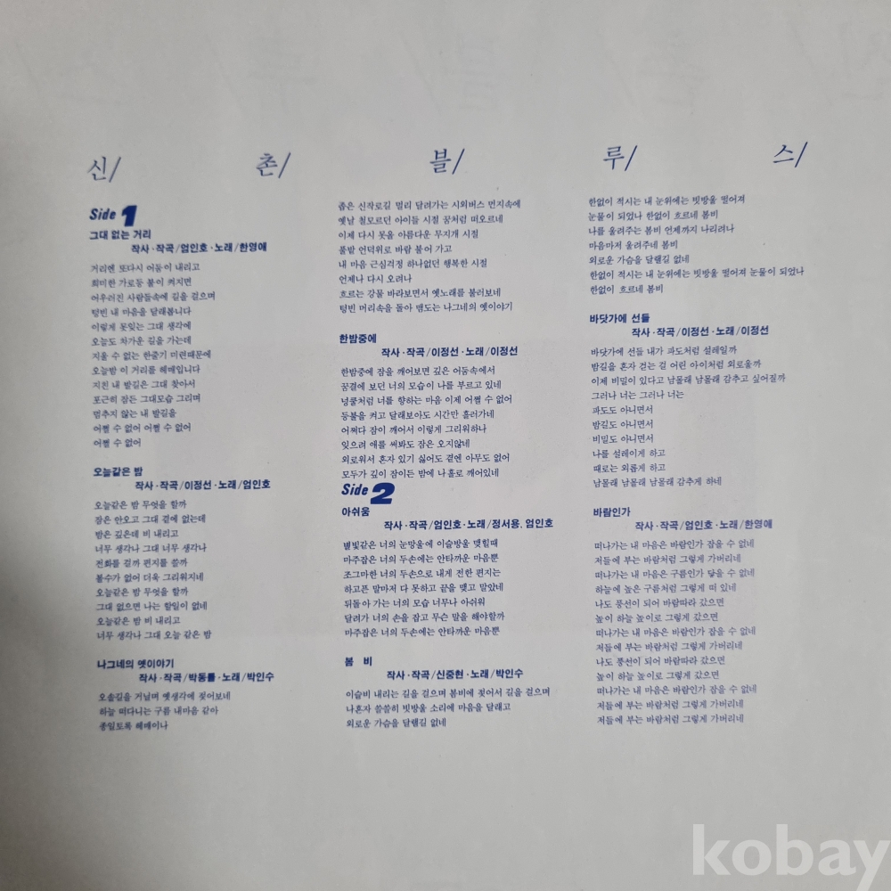 신촌블루스 [그대없는거리, 아쉬움] 이정선, 엄인호, 한영애, 박인수 지구레코드