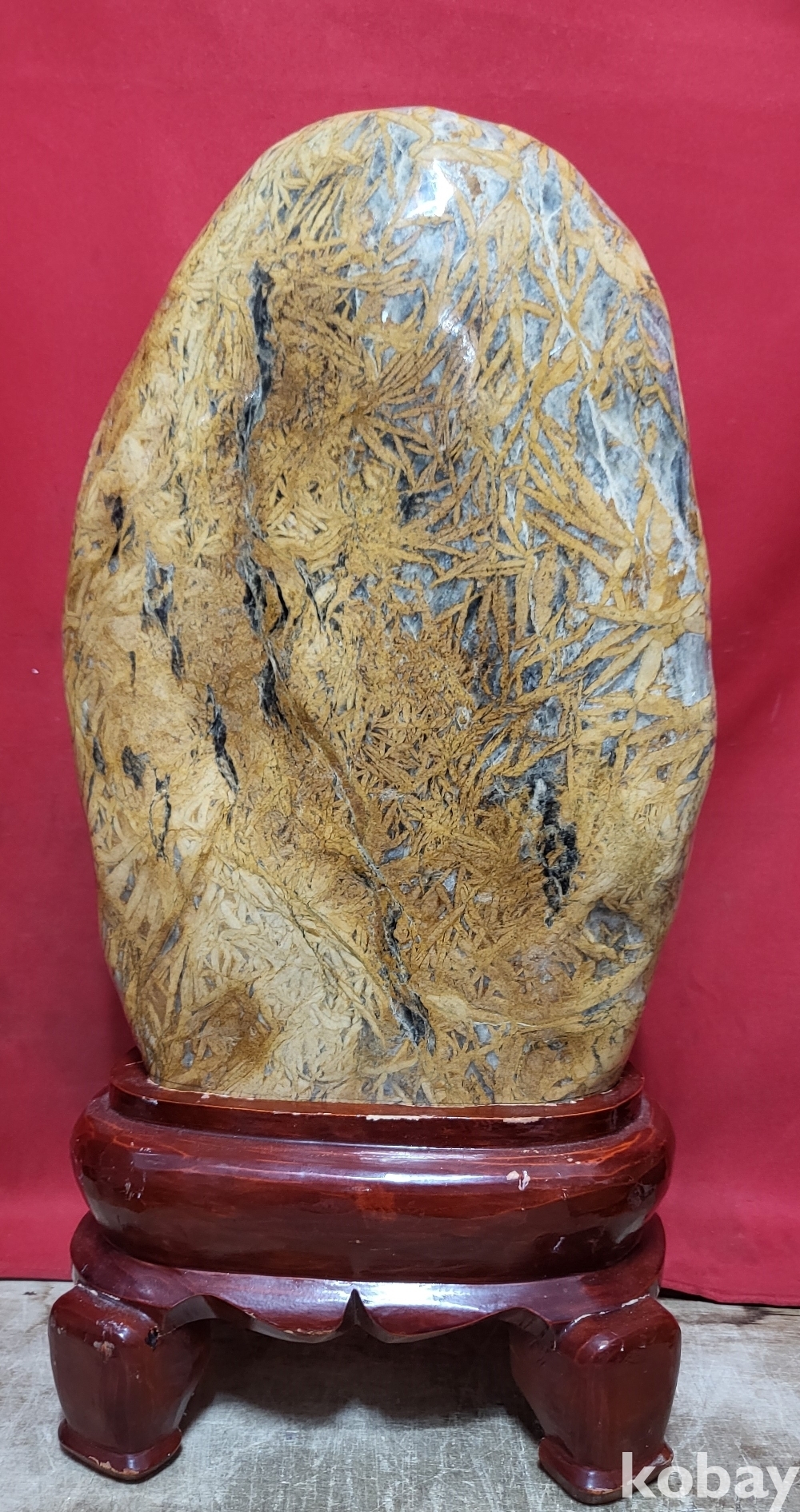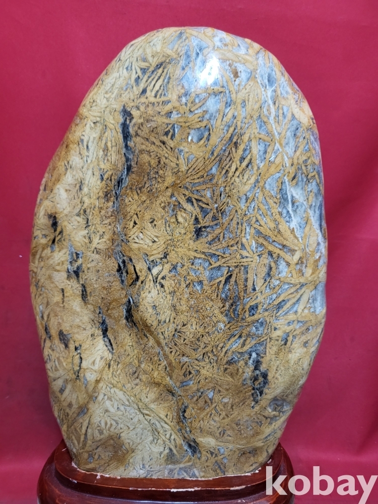 황금색 대나무(竹葉) 문양이 만발한 입석 꽃돌로 대작입니다,