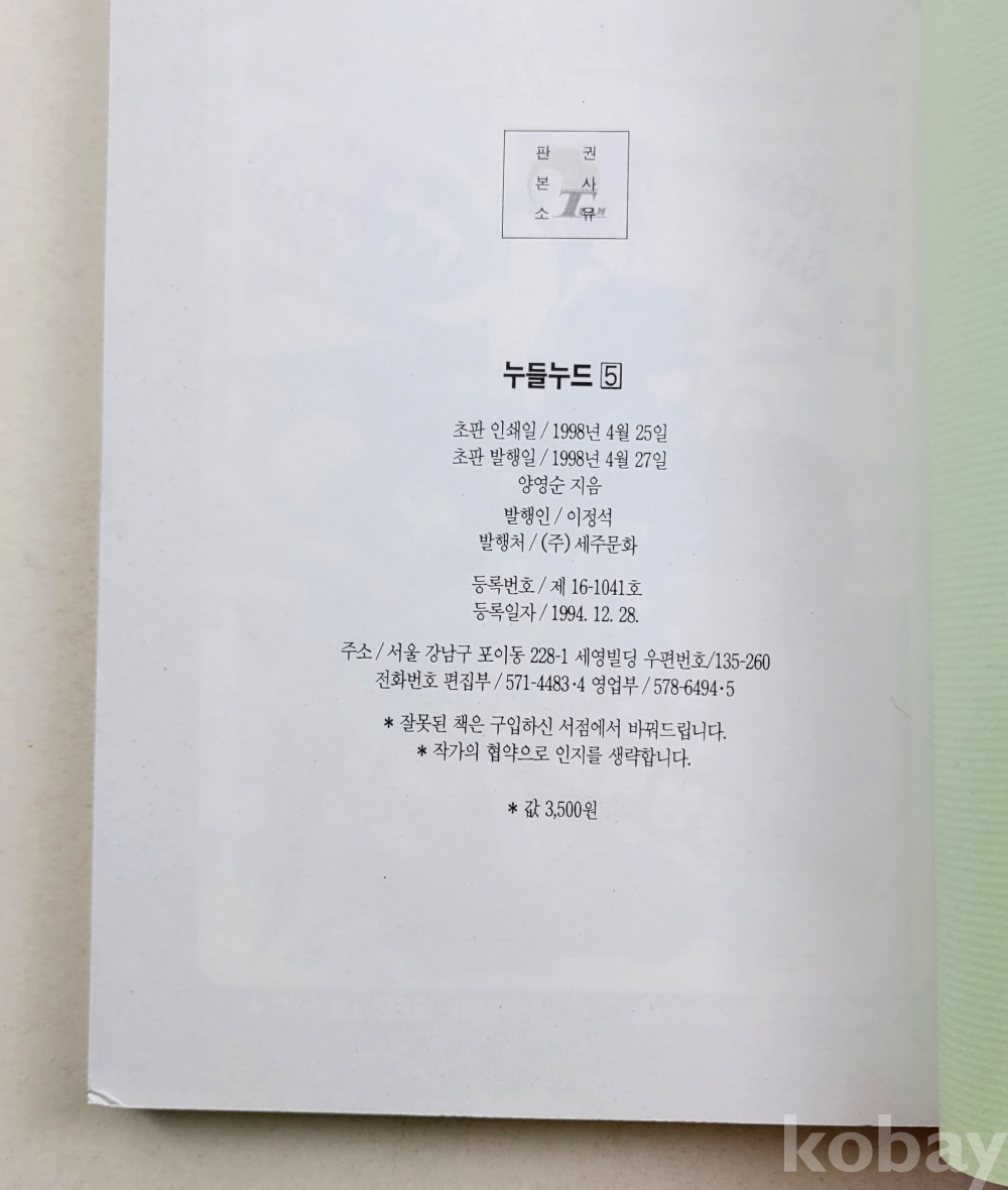 물 품 명 | 양영순 / NuDLNuDE(1~5) 총5권 / 1997~98년 초판 / 세주문화 |