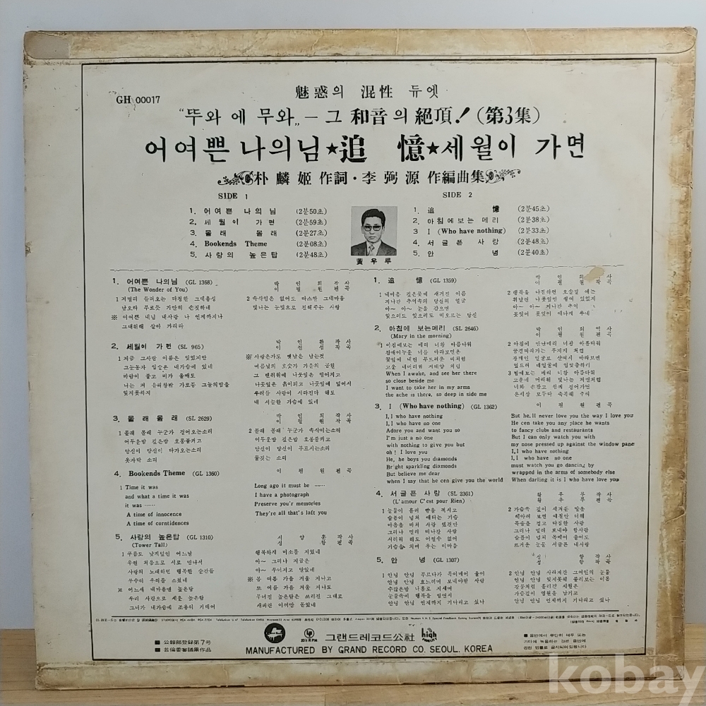 | 자켓상태 | EX : 약간의 마모, 모서리 찢김 존재 | 음반상태 | EX : 재생에 영향 없는 가벼운 기스 존재 | 발매정보 | 초반 | 가사지여부 | 무 |