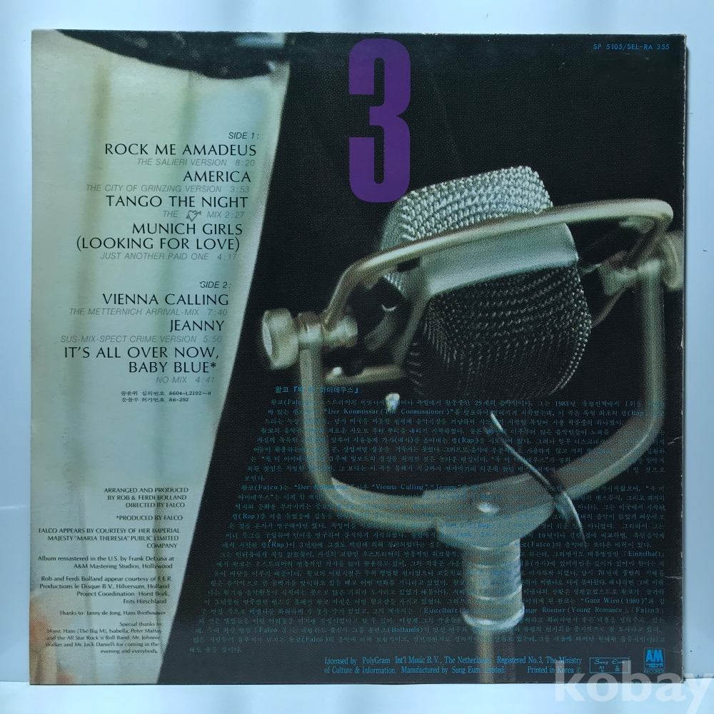 LP 22,447-2 Falco - Falco 3 자켓 EX+ 알판 EX+ 86 년 국내반