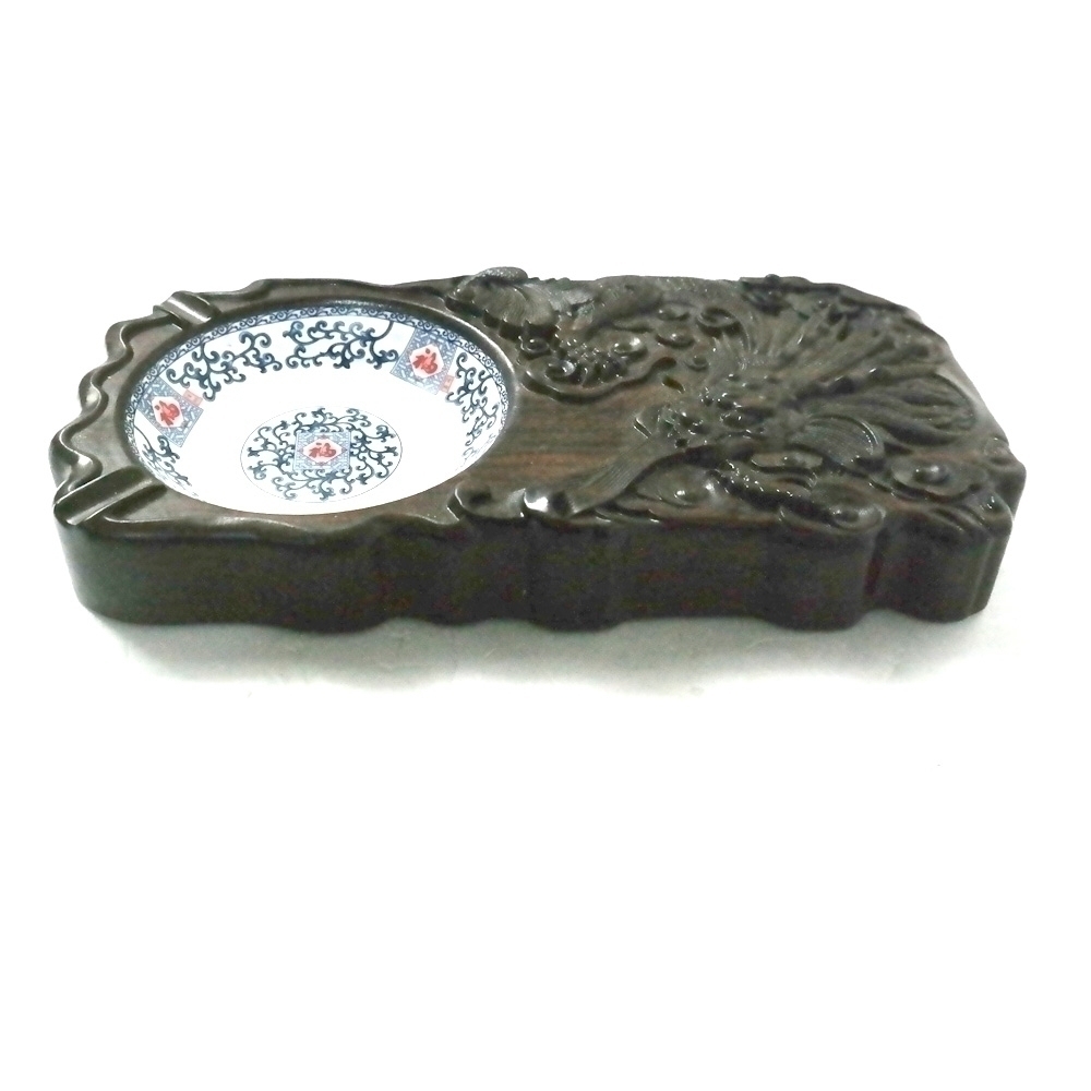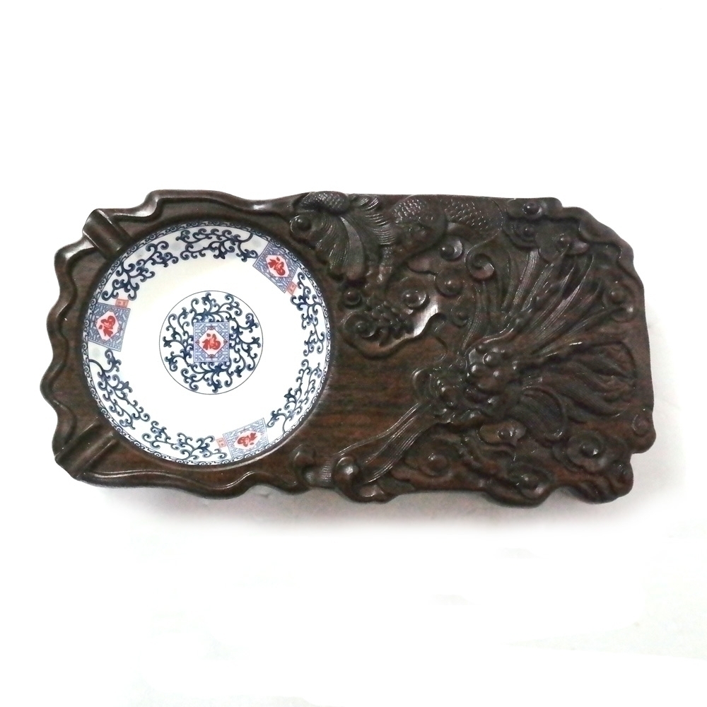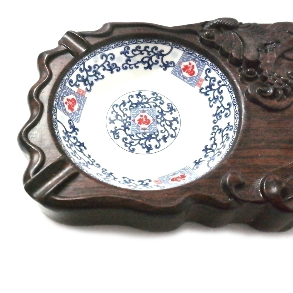 나무가 아닌것같은데 나무처럼 만들어졌으며 도자기같은재질로 만들어진 재떨이같은게 들어가있는 소품1점 입니다