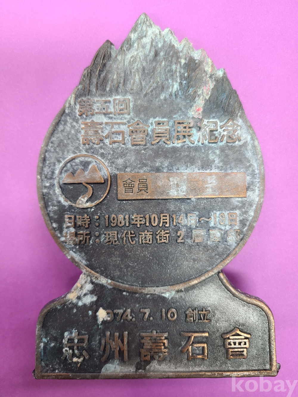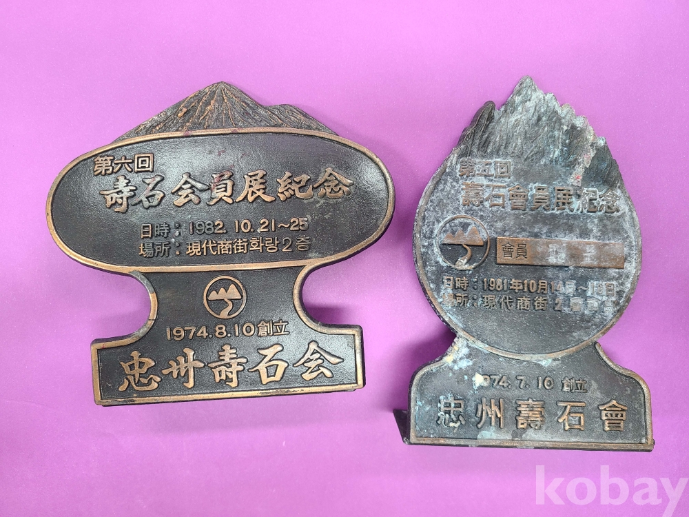 忠州壽石會 壽石展示會 기념패 2점(1981-1982년)