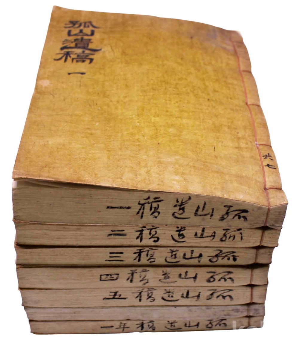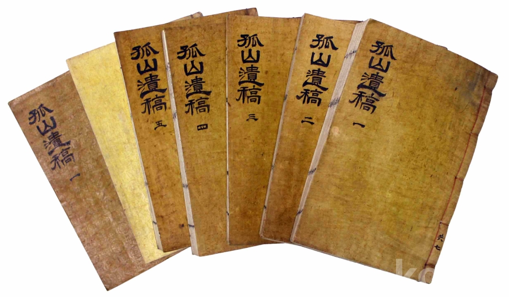 윤선도의 『고산유고』 9권 7책 완질입니다. 현전하는 『고산유고』는 대부분 1791년에 만들어진 판목에서 찍어냈으며, 이 책 역시 1791년 판본을 가지고 19세기 말~20세기 초에 후쇄한 책입니다. 후쇄본임에도 인쇄 상태는 상당히 좋은 편입니다. 참고로 제6책은 다른 질로 보충하였는데, 크기는 1책부터 7책까지 똑같습니다.