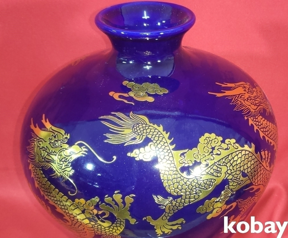 남유(藍釉) 금채(金彩)삼용(參龍)문양 매병입니다,