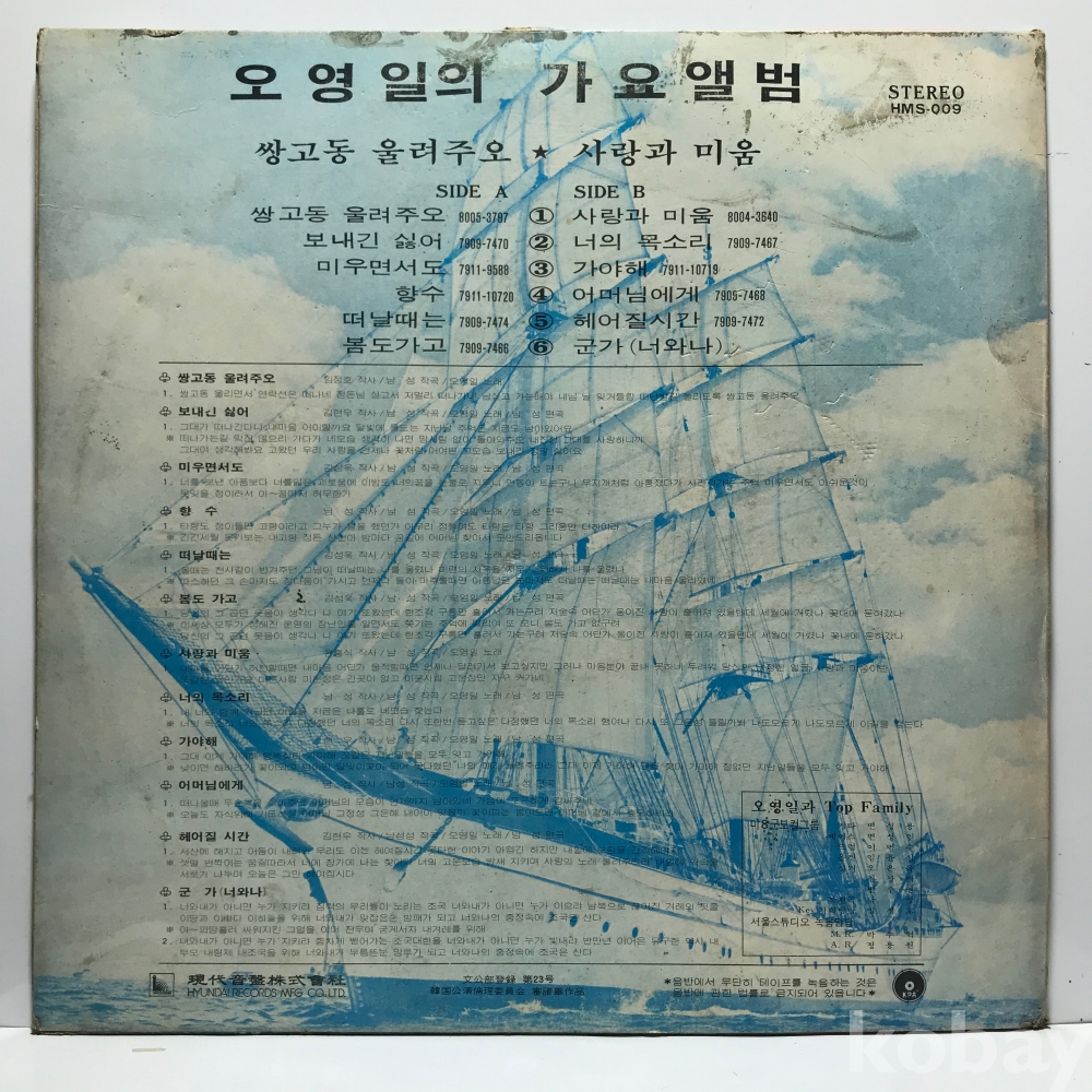 LP 83,740-85 오영일 - 쌍고동 울려주오/ 사랑의 미움 . 자켓 EX- 알판 EX 80 년 국내반