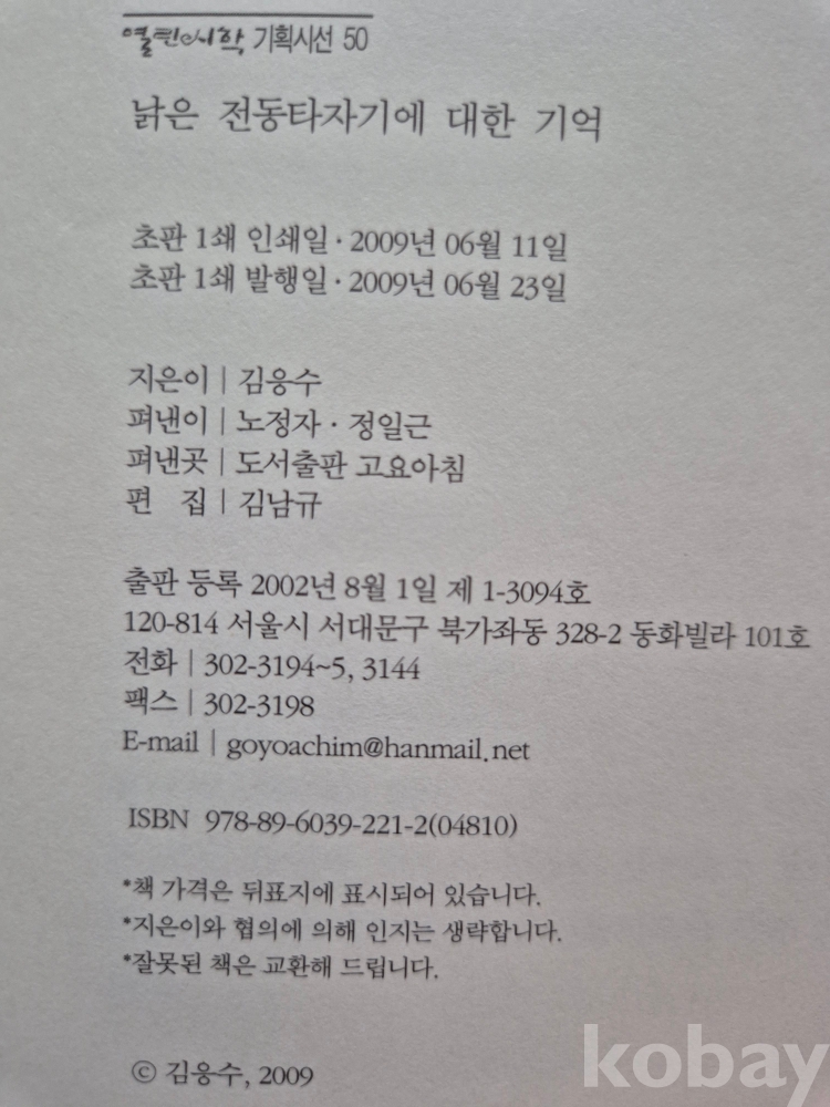 2009년 발간한 첫 시집 『낡은 전동타자기에 대한 기억』