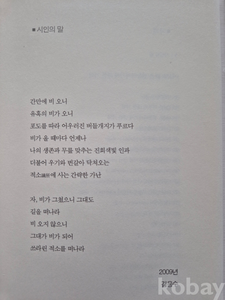 김응수(대구광역시: 1958) 저자서명 처녀시집.