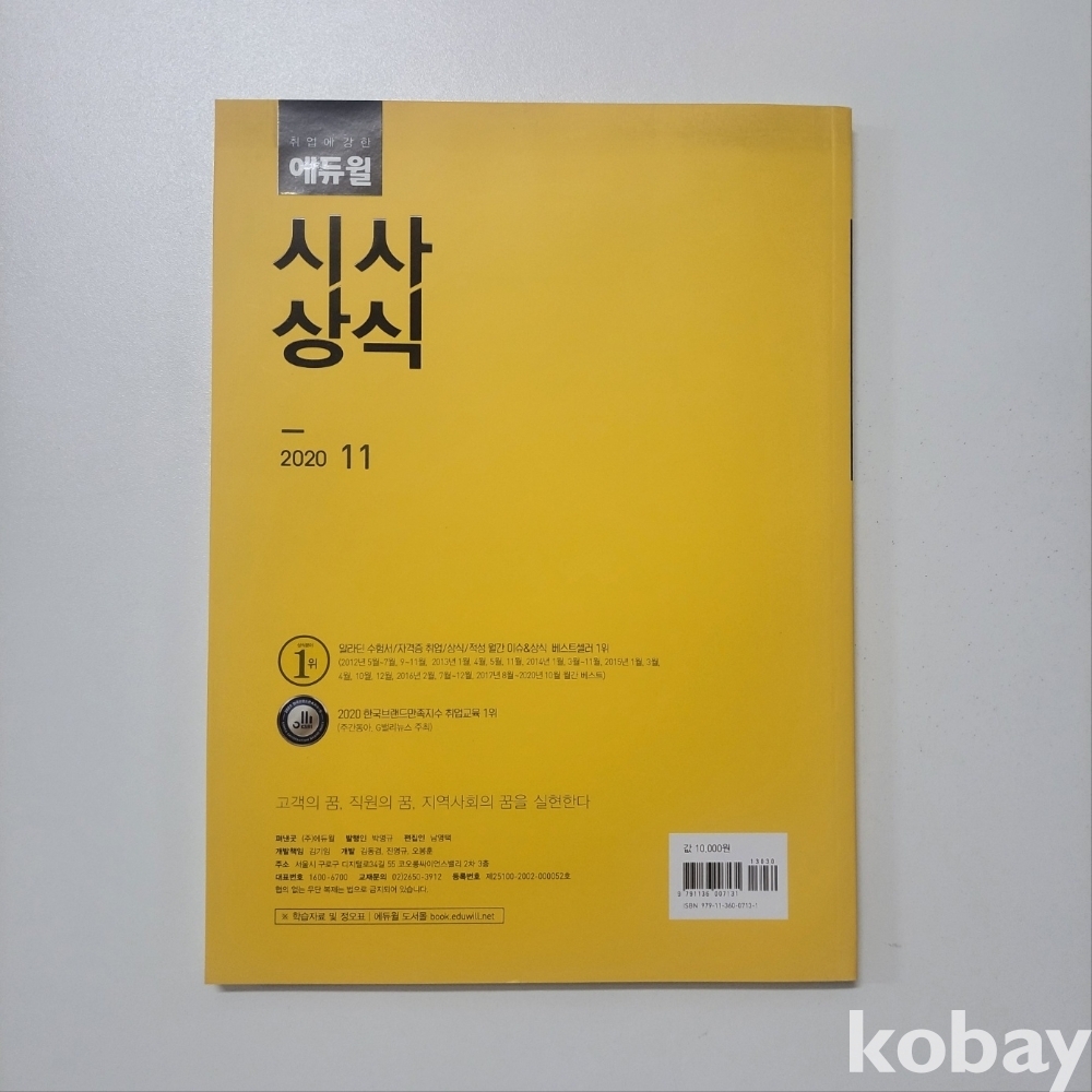 [천원경매] 월간최신 취업에 강한 에듀윌 시사상식 2020.11 ; 최상급/H1204