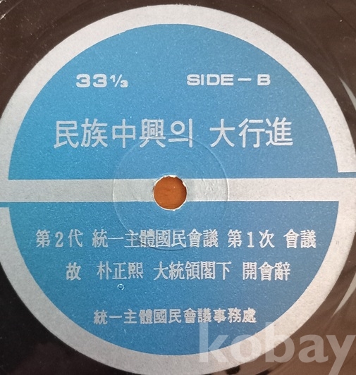 ◆ 民族中興의 大行進(제2대 통일주체국민회의 제1차 회의/고 박정희대통령 개회사), 統一主催國民會議 事務處() 7인치 싱글반.