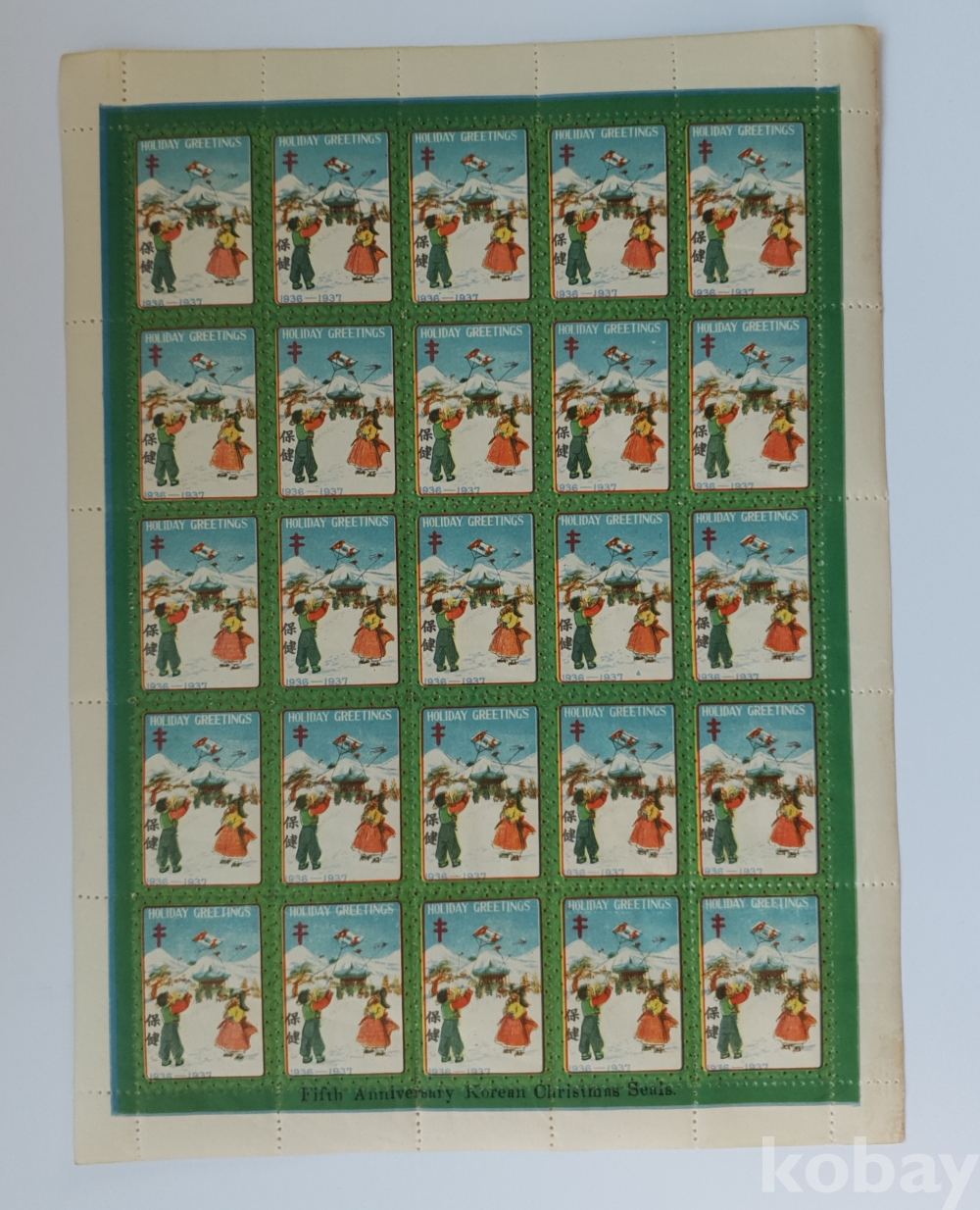 1936년 크리스마스씰. 연날리는 어린이.전지