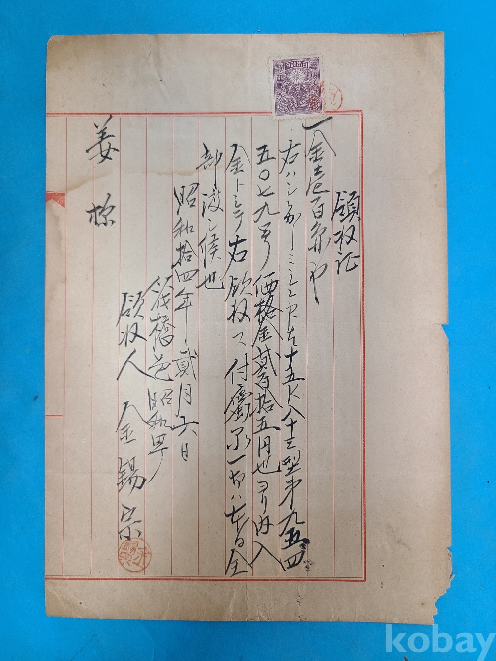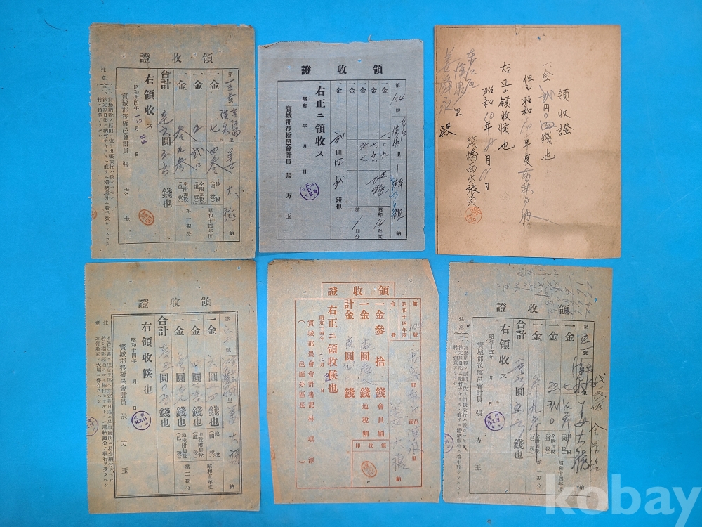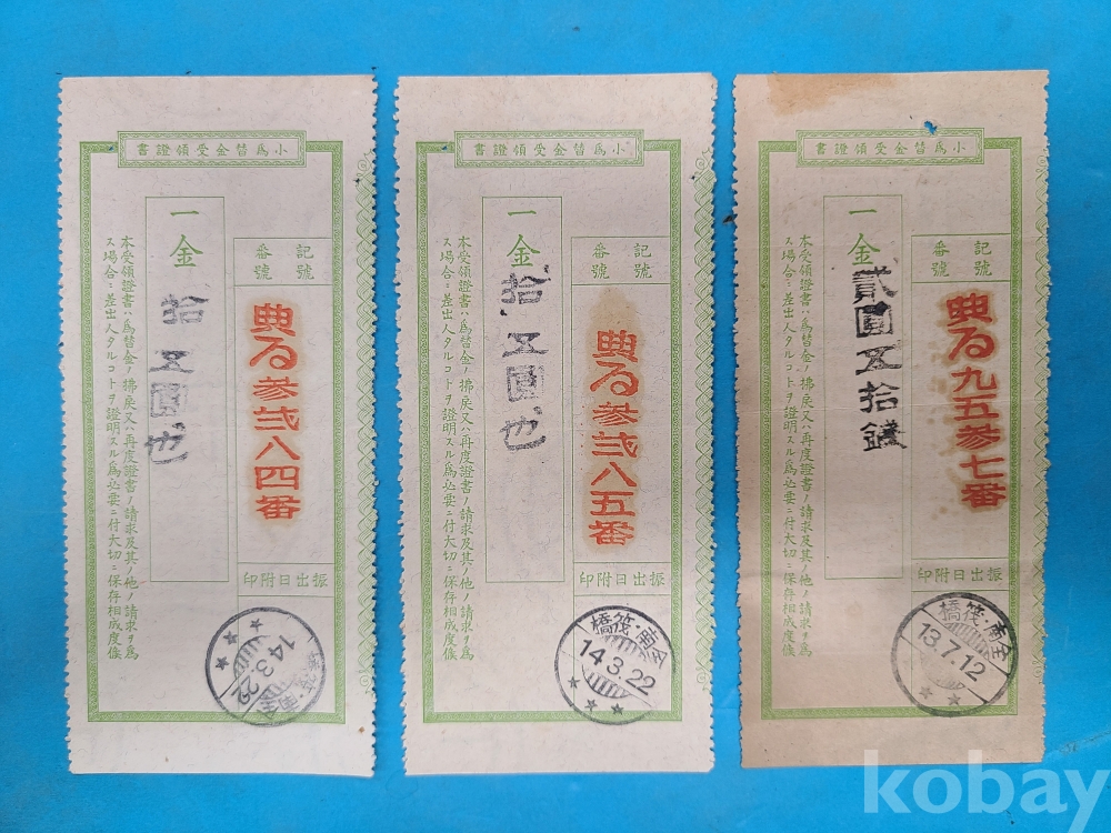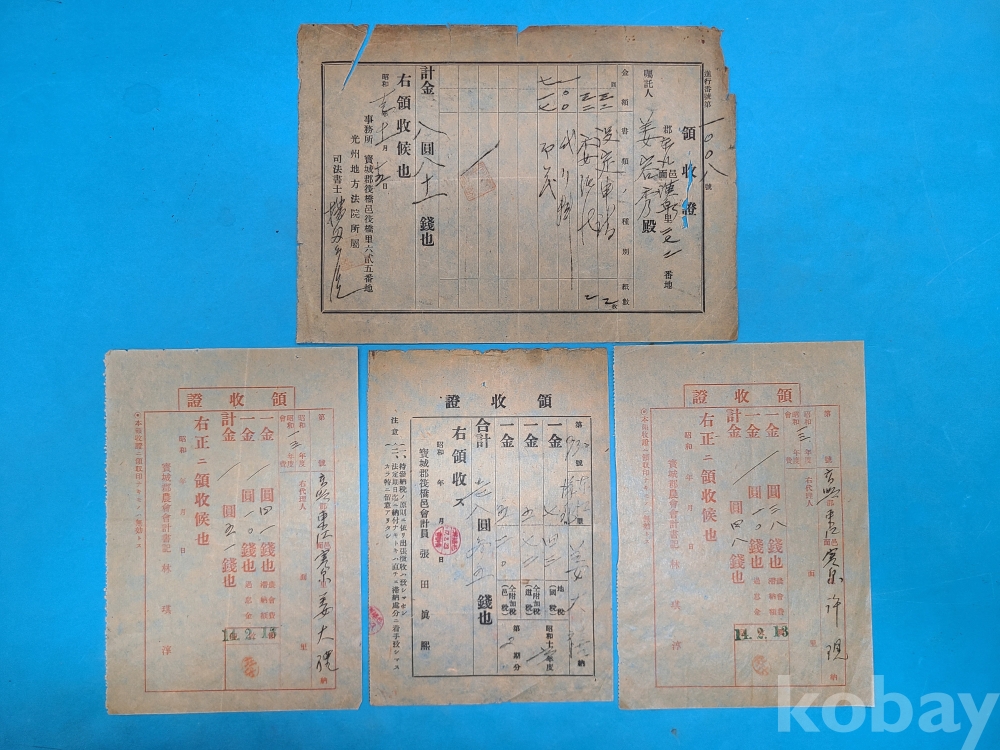 *** 벌교세무서장, 영수증, 금융전표,광일약국 자료, 소화물 영수증, 진체저금영수증, 소위체금수 령증서, 우편물 수령증, 수입인지 첩부 영수증 등
