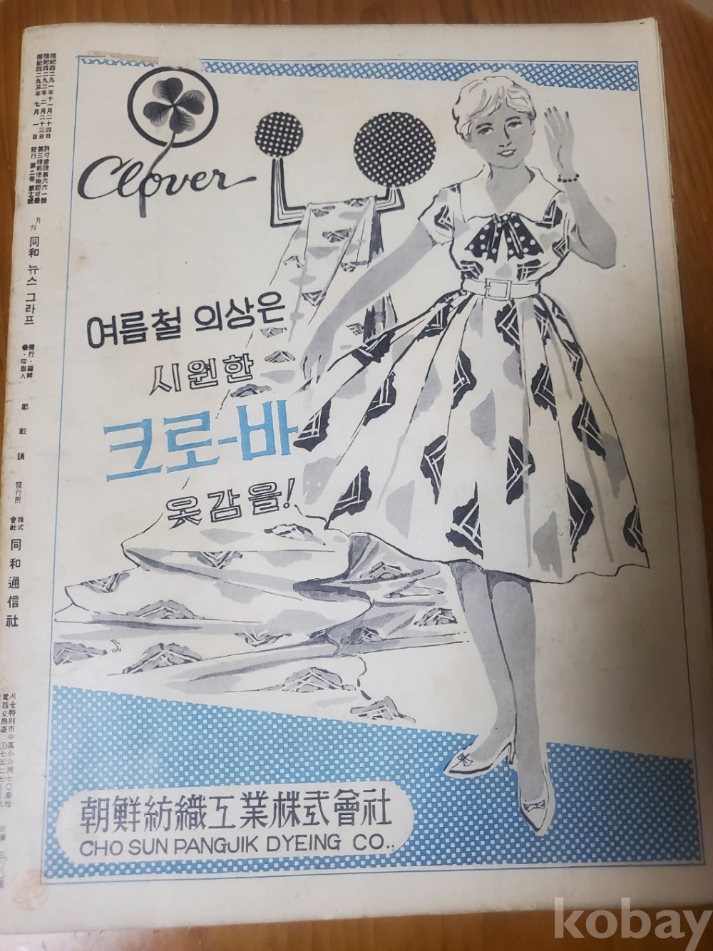 3. 앞표지(아이젠하워 미국 대통령?), 뒤표지(조선방직 크로바 옷감 광고)