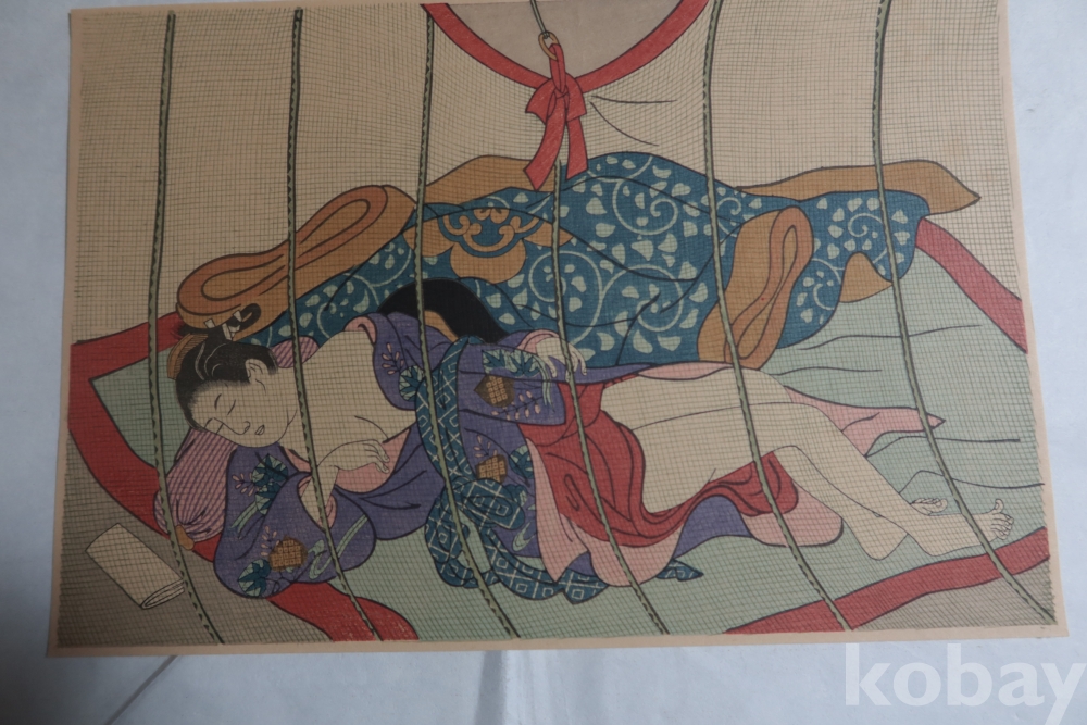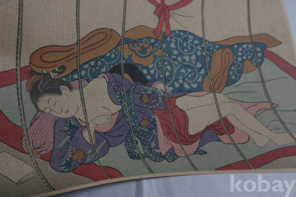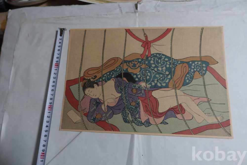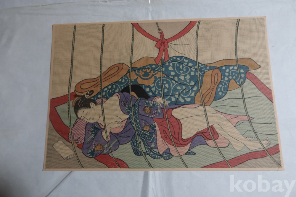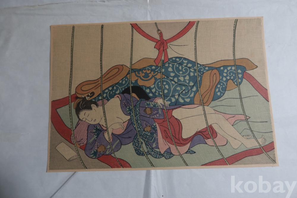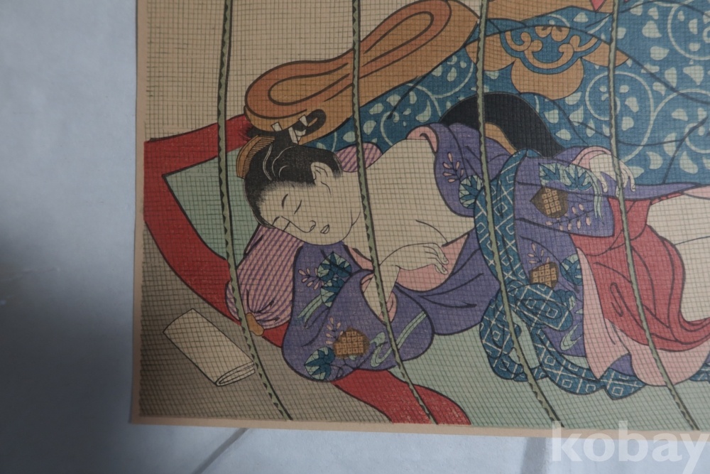 목판화의 최고 기술을 보여 주는 치밀 한 모기장과 여인을 표현한 명물 임니다 소화 초기의 목판화 임니다 사진 참조 하세요