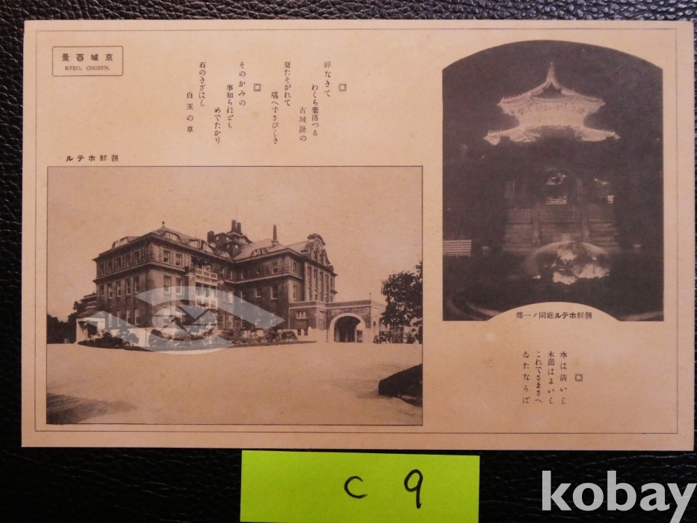 ▣근대한국엽서(진본): 조선총독부 조선호텔과 황궁우(국궁우) 야경, 귀함/1매/조선명소/역사자료, 일제강점기 사진엽서, 그림엽서, 회엽서.C9
