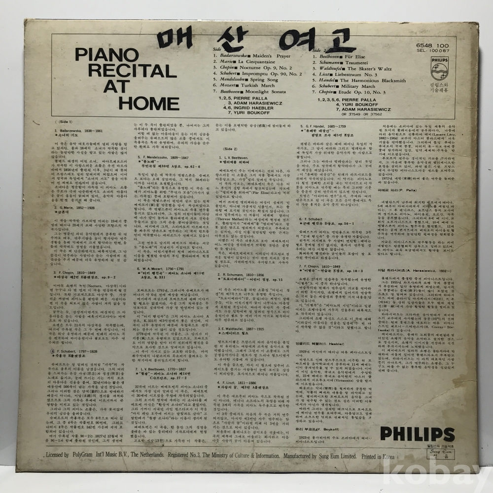 LP 83,830-23 피아노 소품집 (Maiden's Prayer - Piano Recital at Home) . 자켓 EX- 알판 VG+ 73 년 국내반