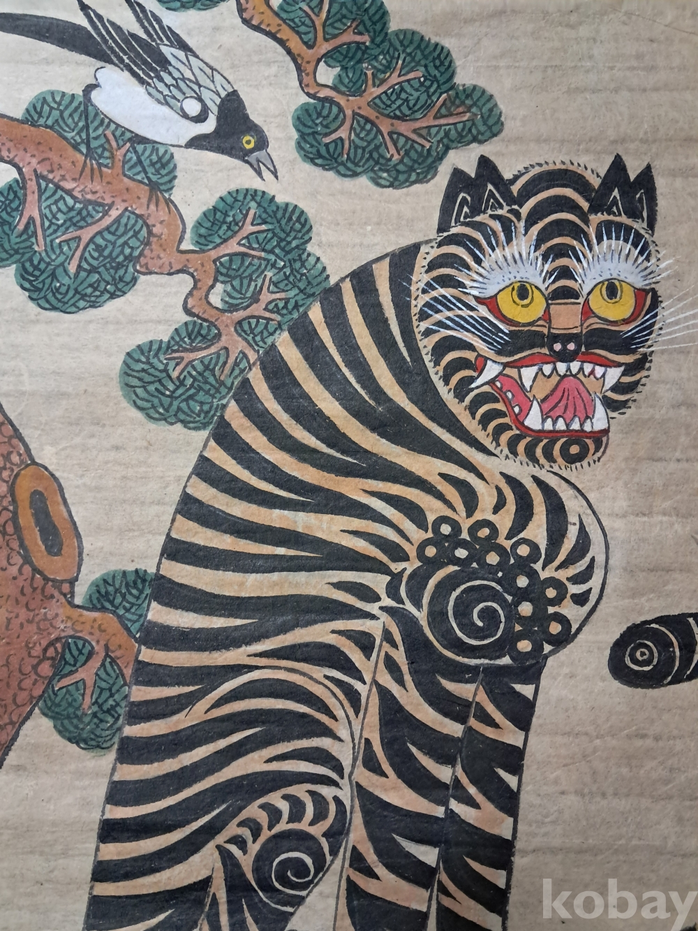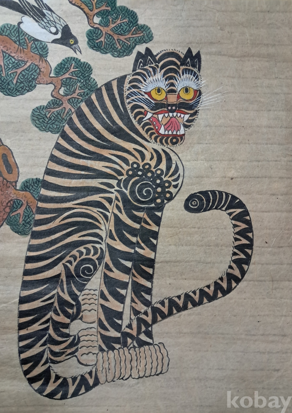 민화 까치 호랑이 장지