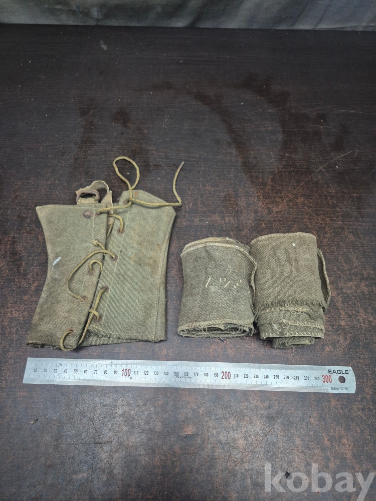 2차세계대전 당시 사용하던 군용 캔버스재질 각반1점과 군용 스트랩 2점 세트 일괄 8*220