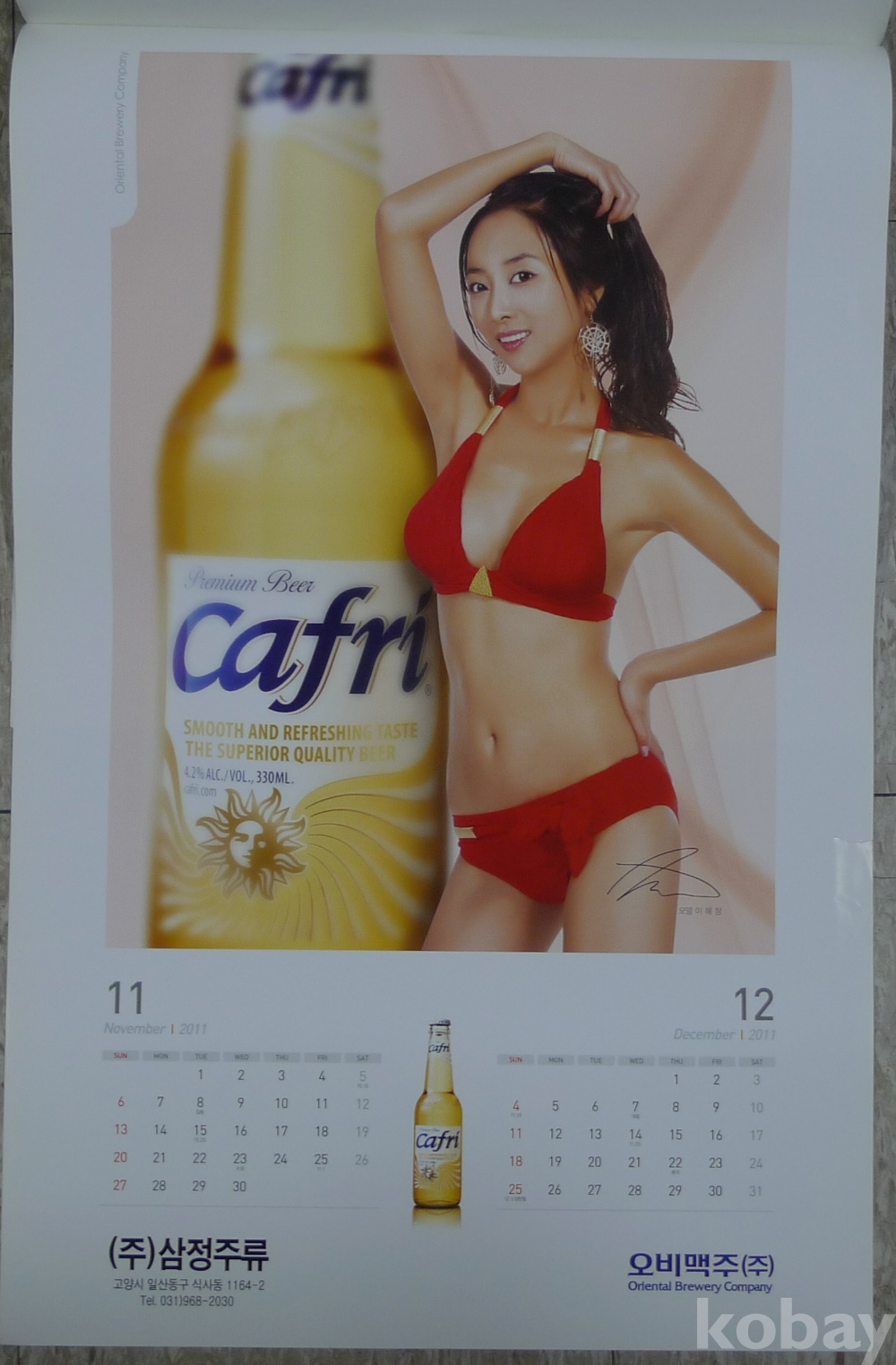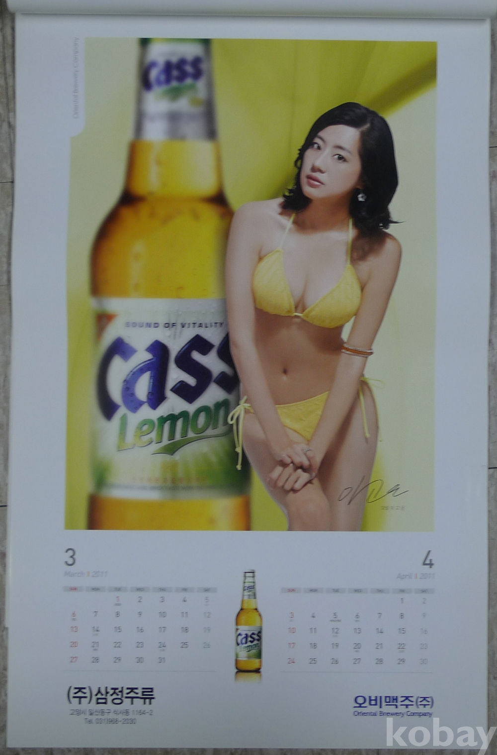 2011년 여성 누드 비키니 모델 오비맥주 광고 벽걸이 달력
