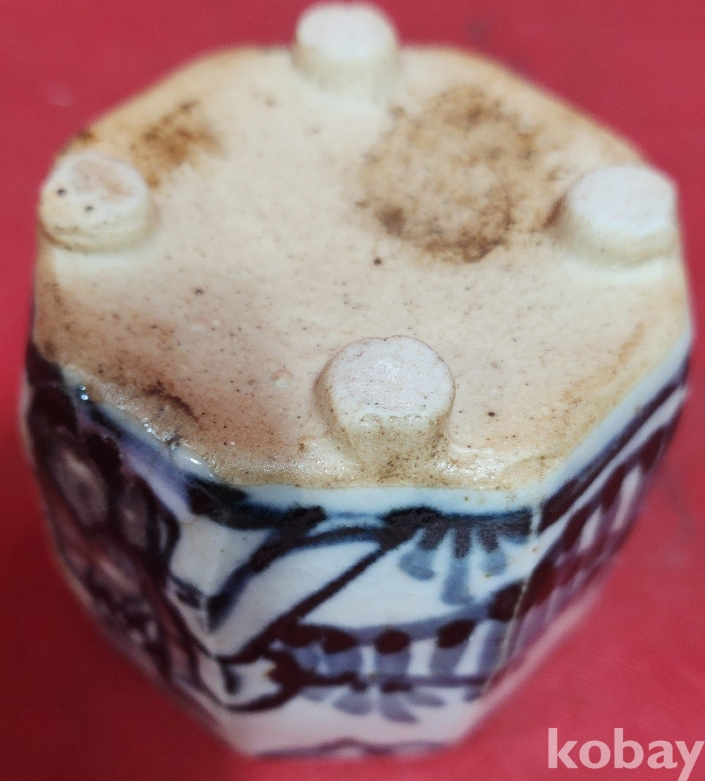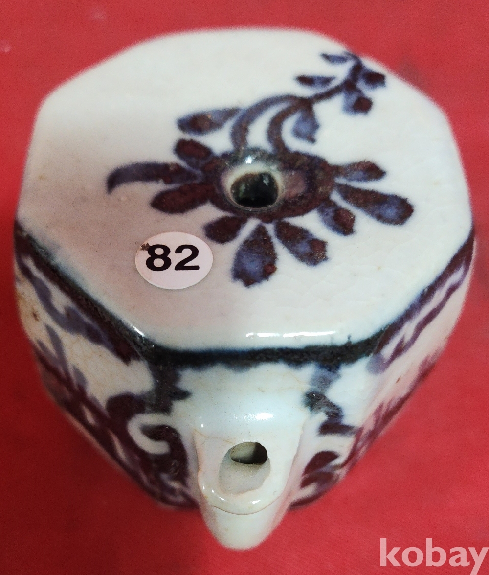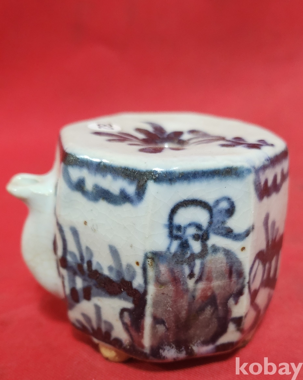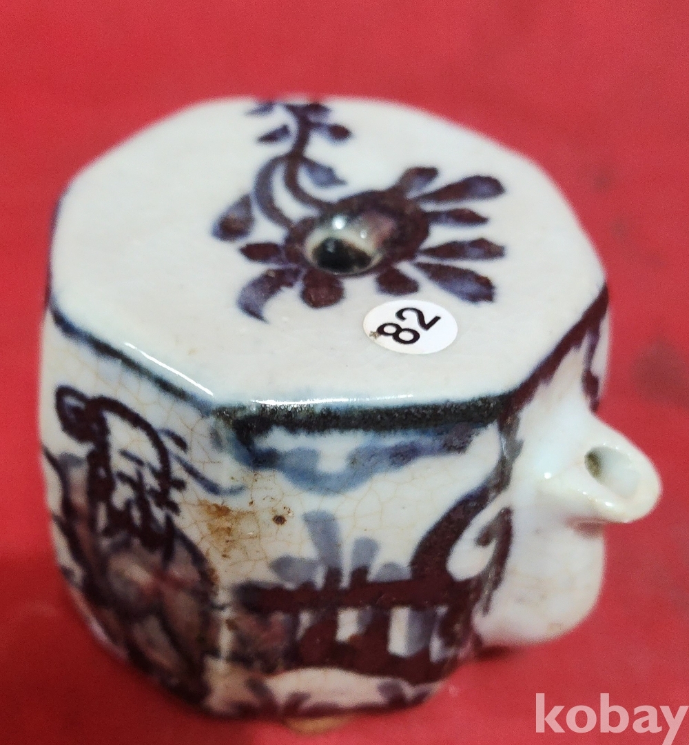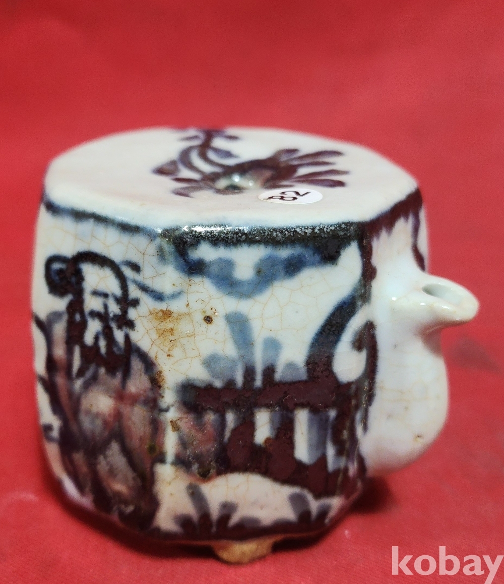 철화백자 인물문양 8각형 사족(四足) 연적입니다,
