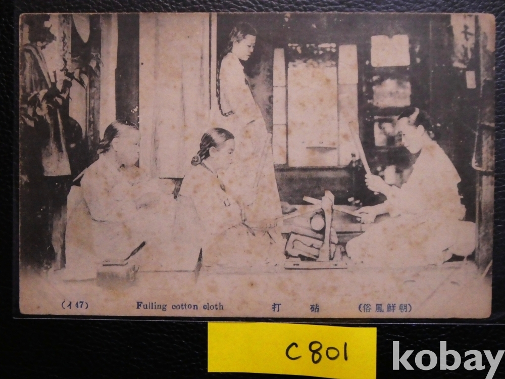 ▣한국근대엽서(진본): 다듬이질 하는 조선 여인, 히노데상행, 흔적이 있어 저렴/1매/역사자료, 일제시대, 일제강점기 사진엽서,그림엽서,회엽서. C801
